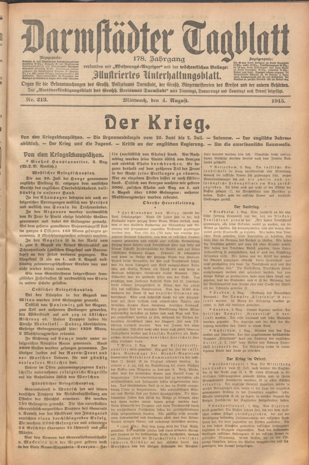 Der Erste Weltkrieg im Spiegel hessischer Regionalzeitungen