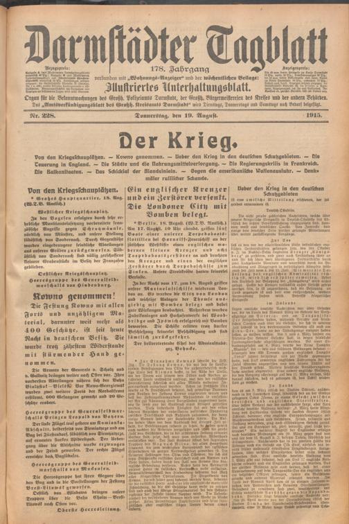 Der Erste Weltkrieg im Spiegel hessischer Regionalzeitungen