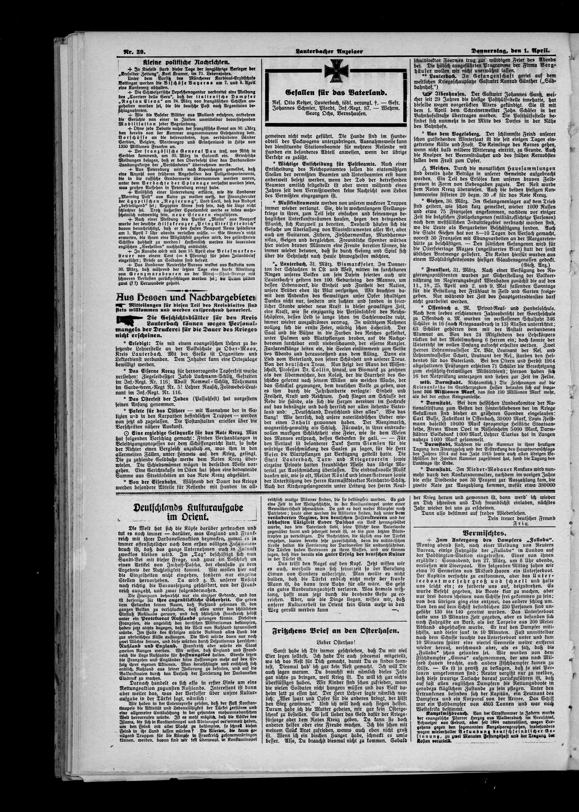 Lauterbacher Anzeiger. 1849-1916