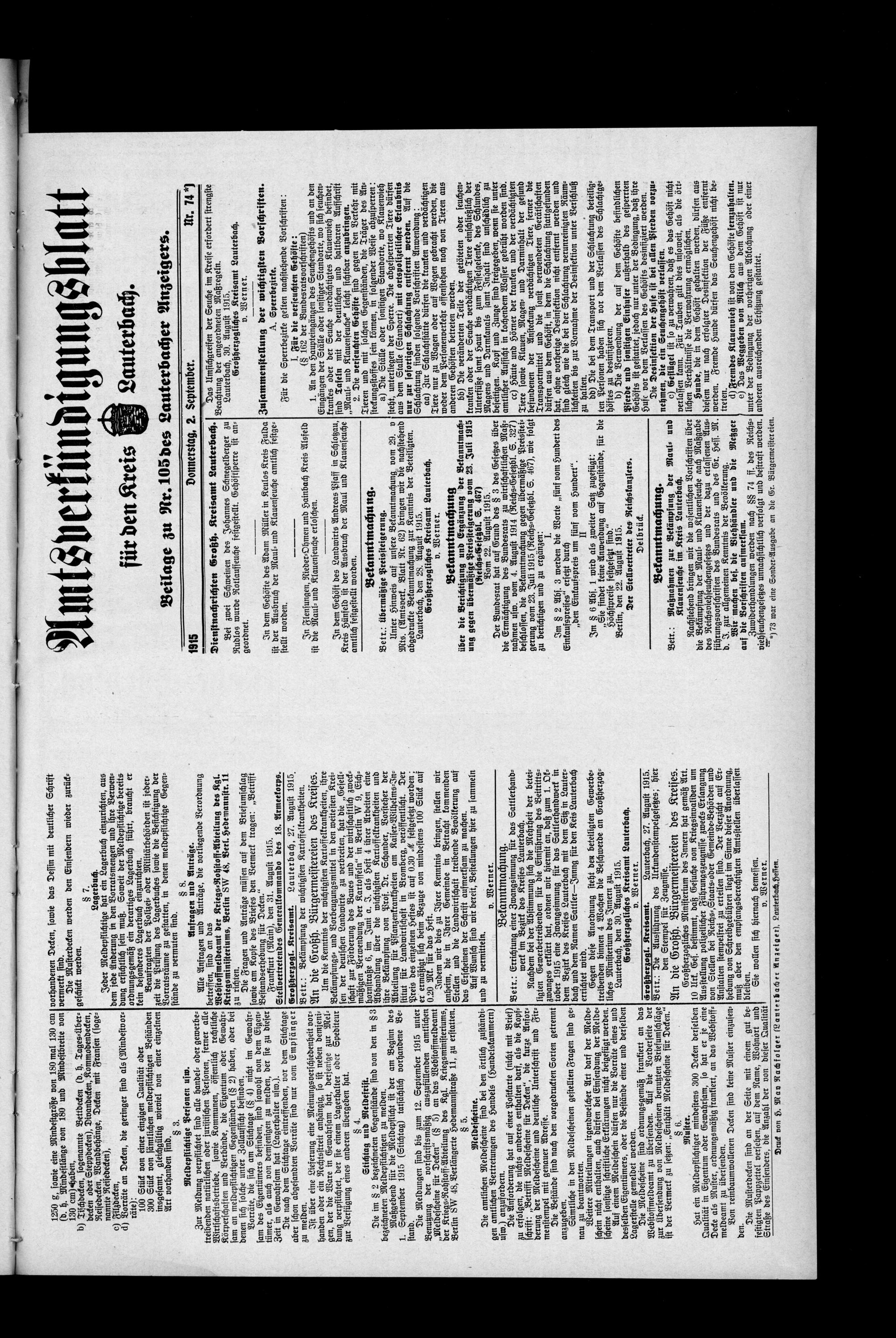 Lauterbacher Anzeiger. 1849-1916