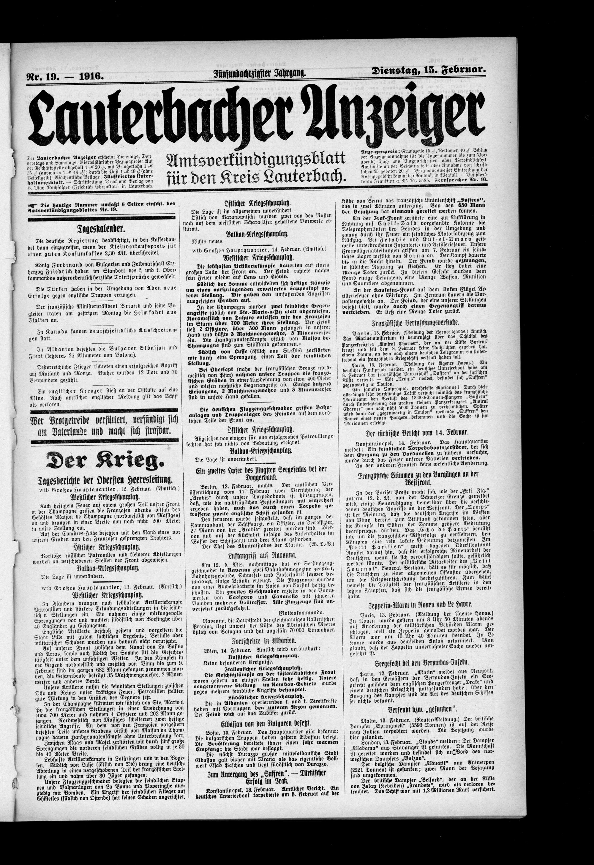 Lauterbacher Anzeiger. 1849-1916