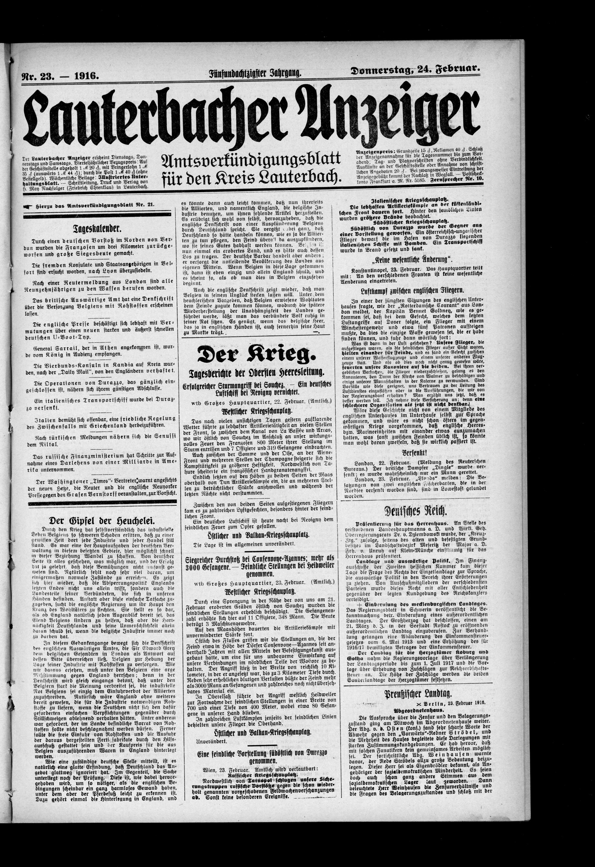 Lauterbacher Anzeiger. 1849-1916