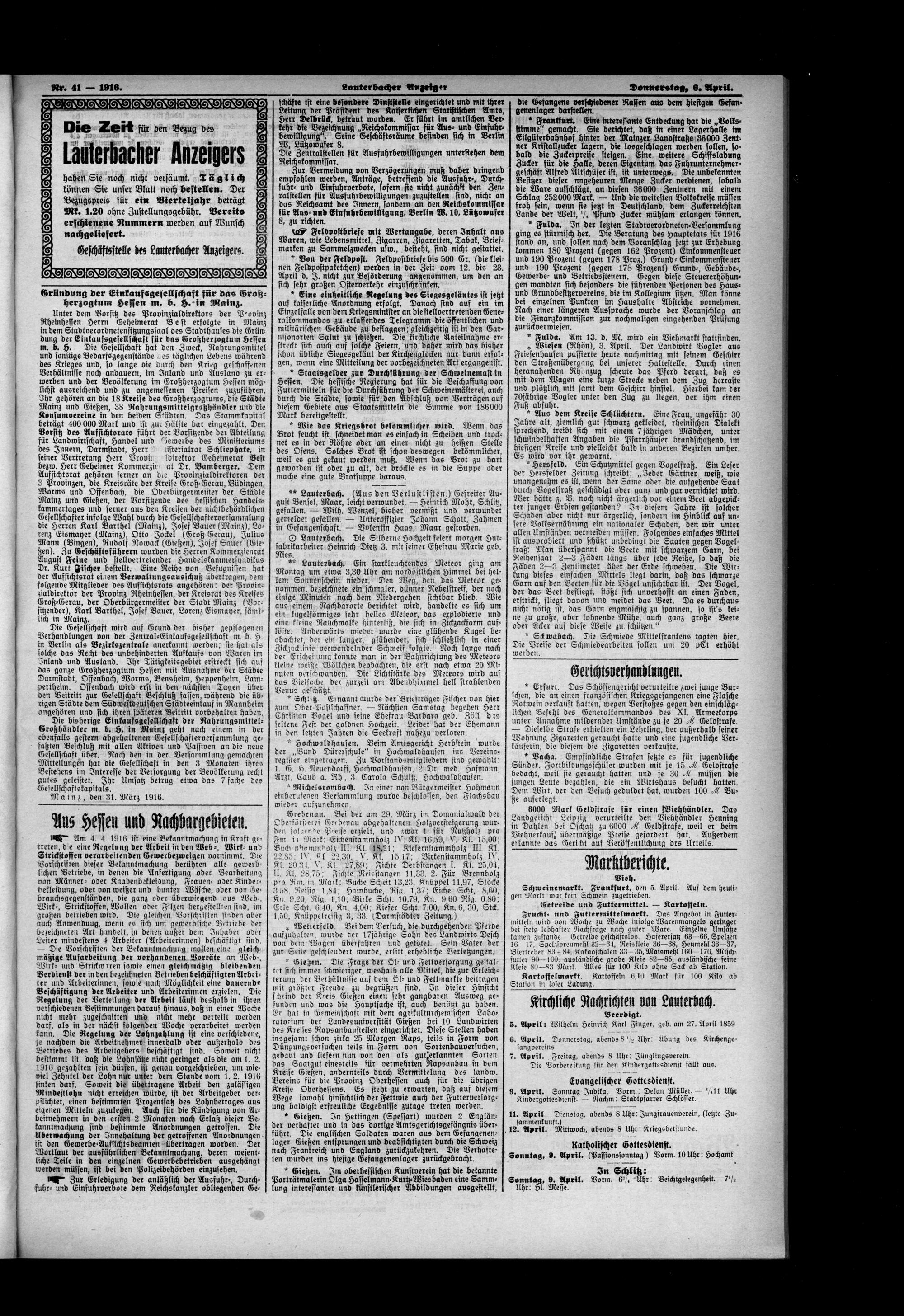 Lauterbacher Anzeiger. 1849-1916