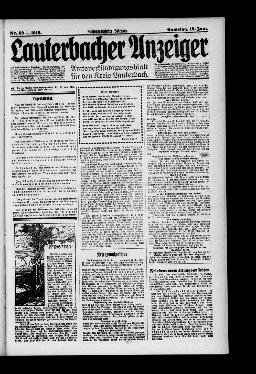 Lauterbacher Anzeiger. 1849-1916