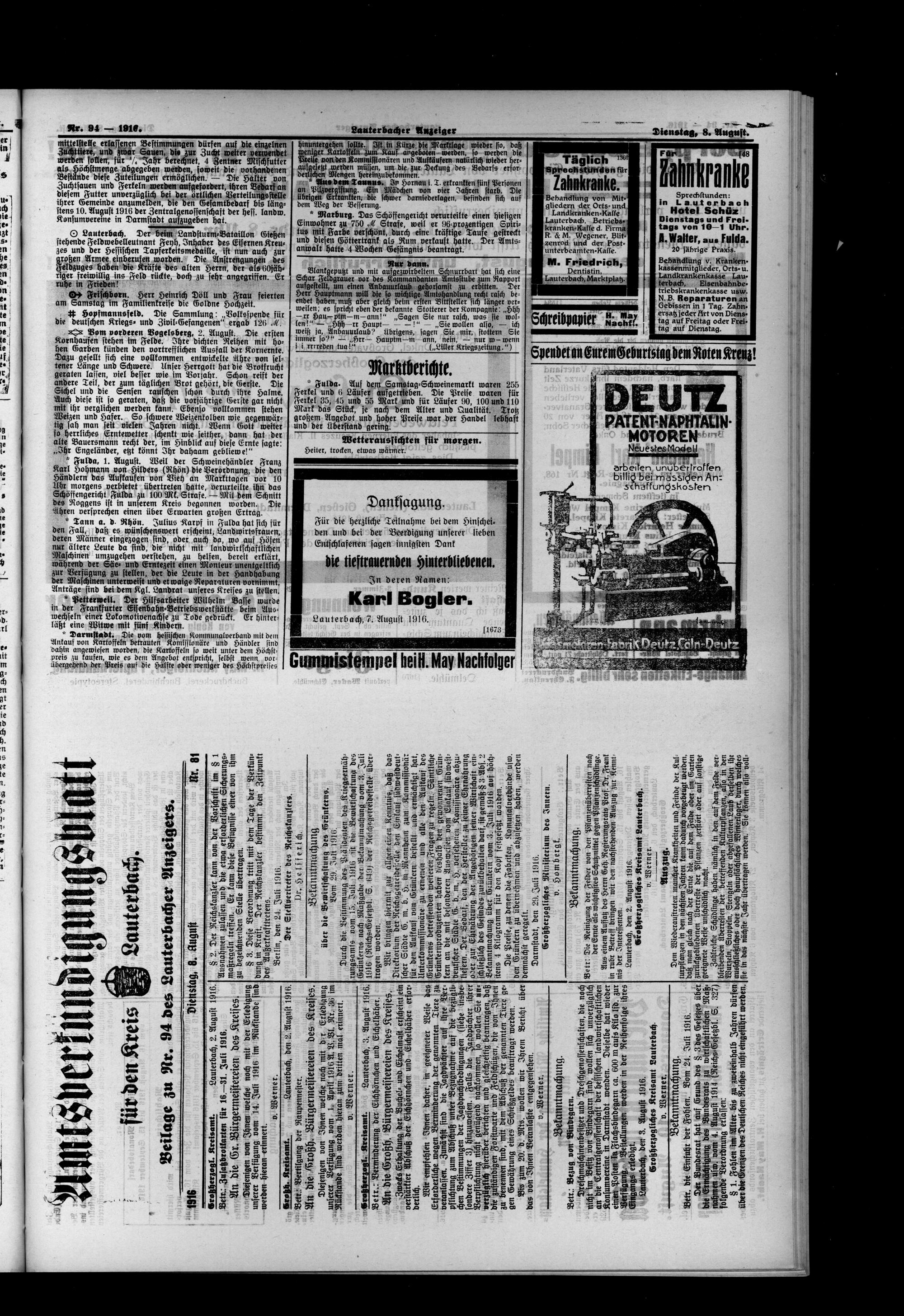 Lauterbacher Anzeiger. 1849-1916