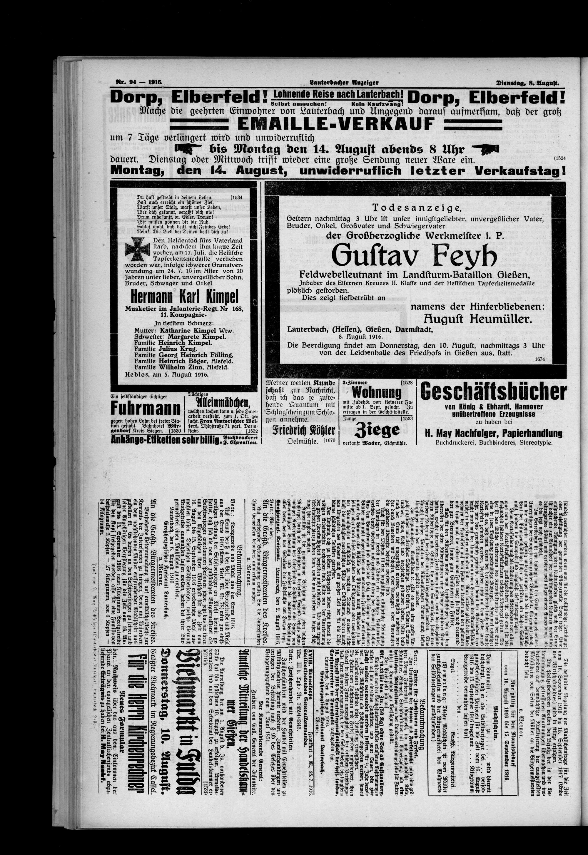 Lauterbacher Anzeiger. 1849-1916