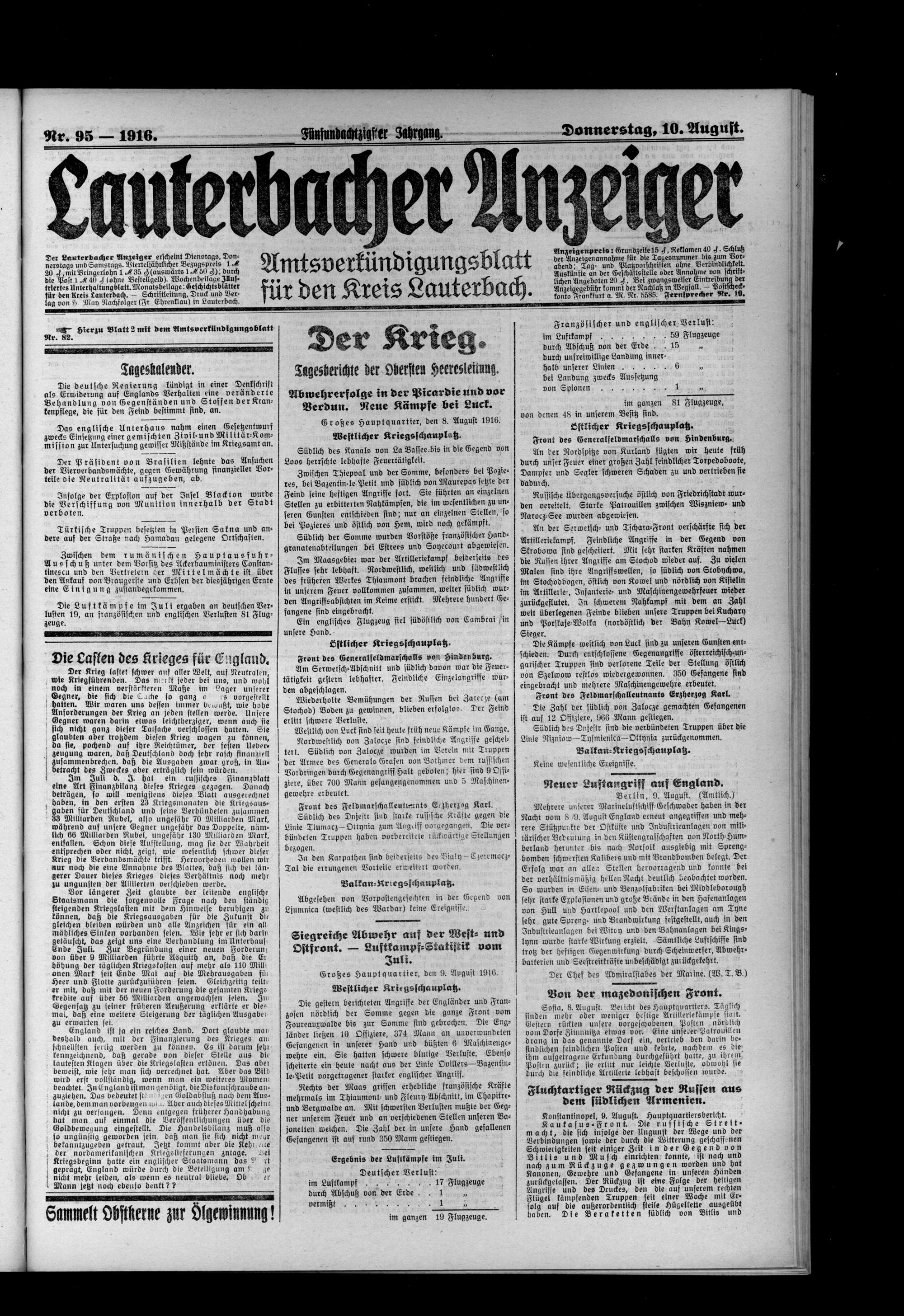 Lauterbacher Anzeiger. 1849-1916