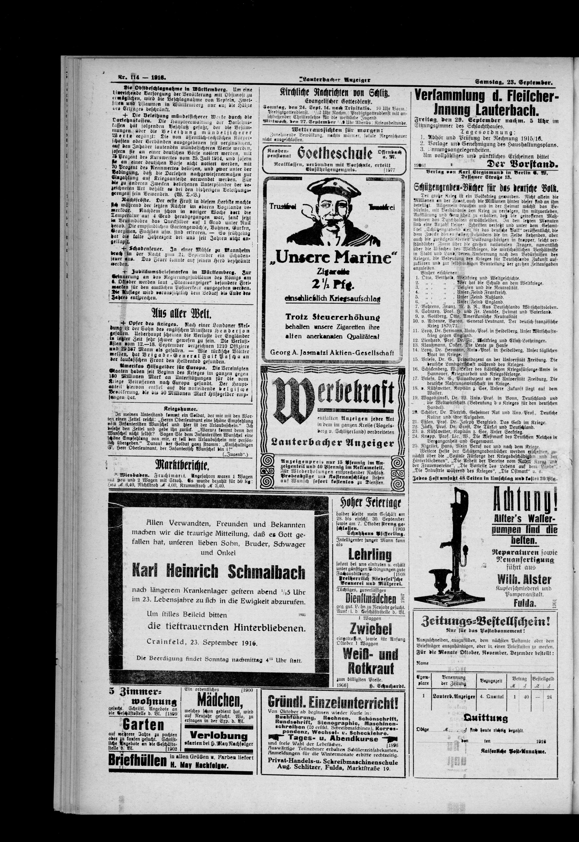 Lauterbacher Anzeiger. 1849-1916