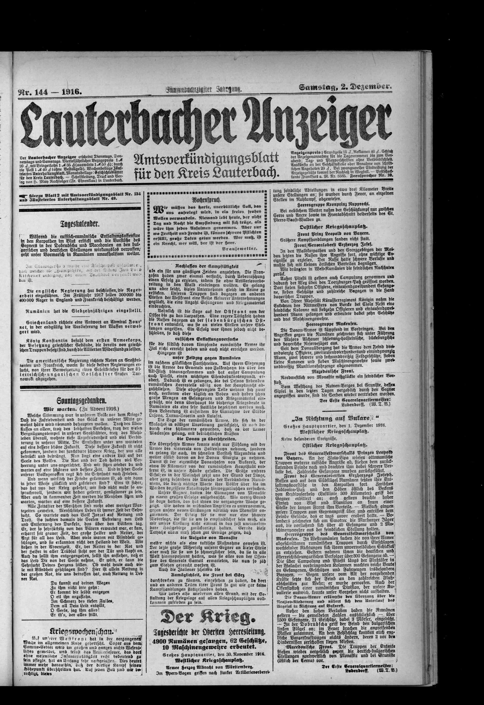 Lauterbacher Anzeiger. 1849-1916