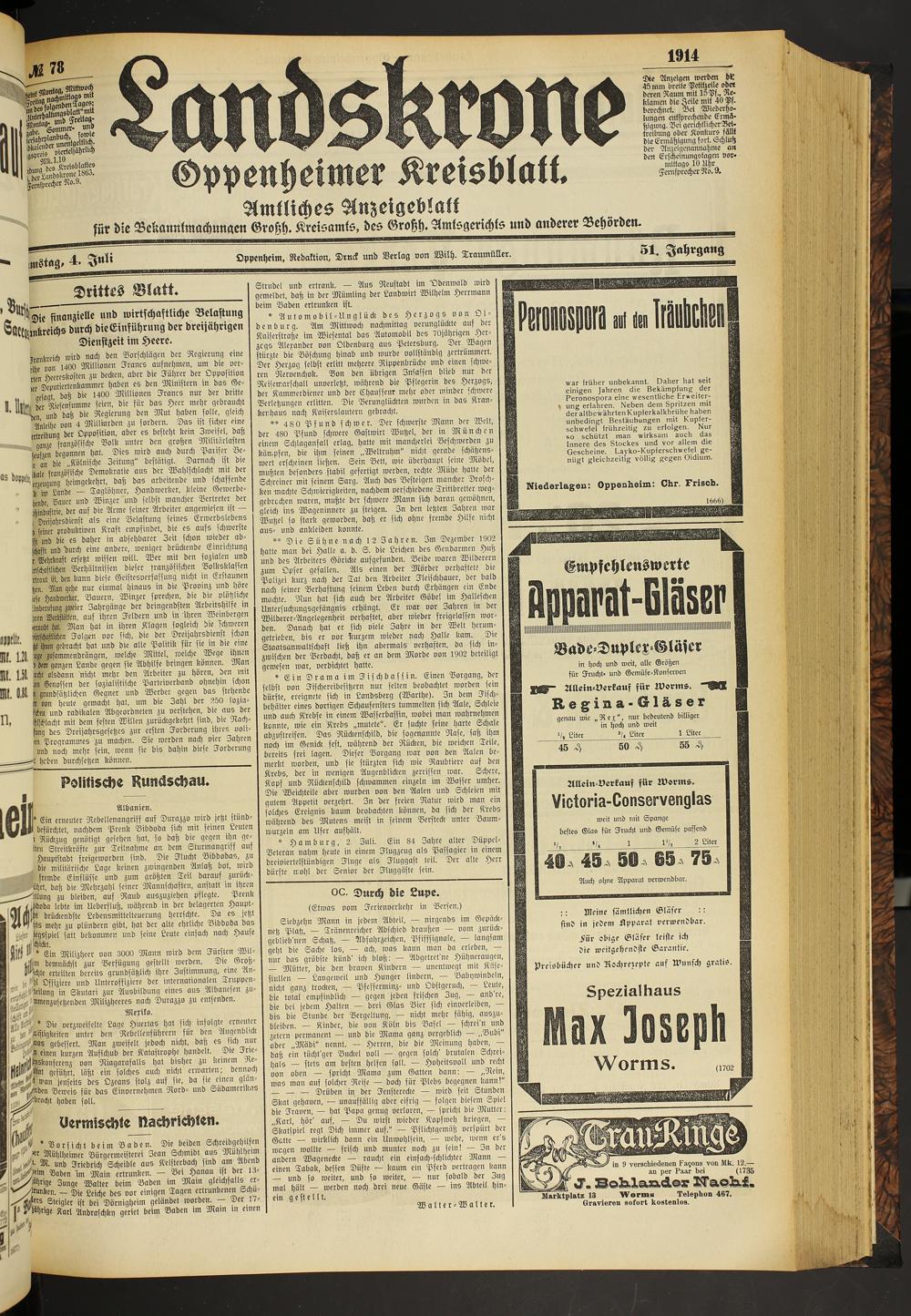 Landskrone. 1914-1918