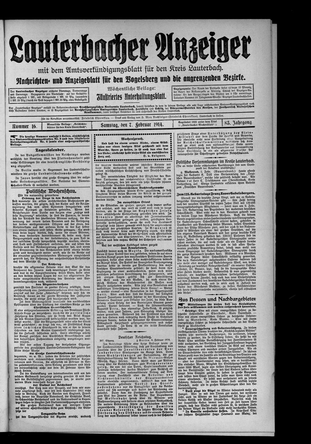 Lauterbacher Anzeiger. 1849-1916