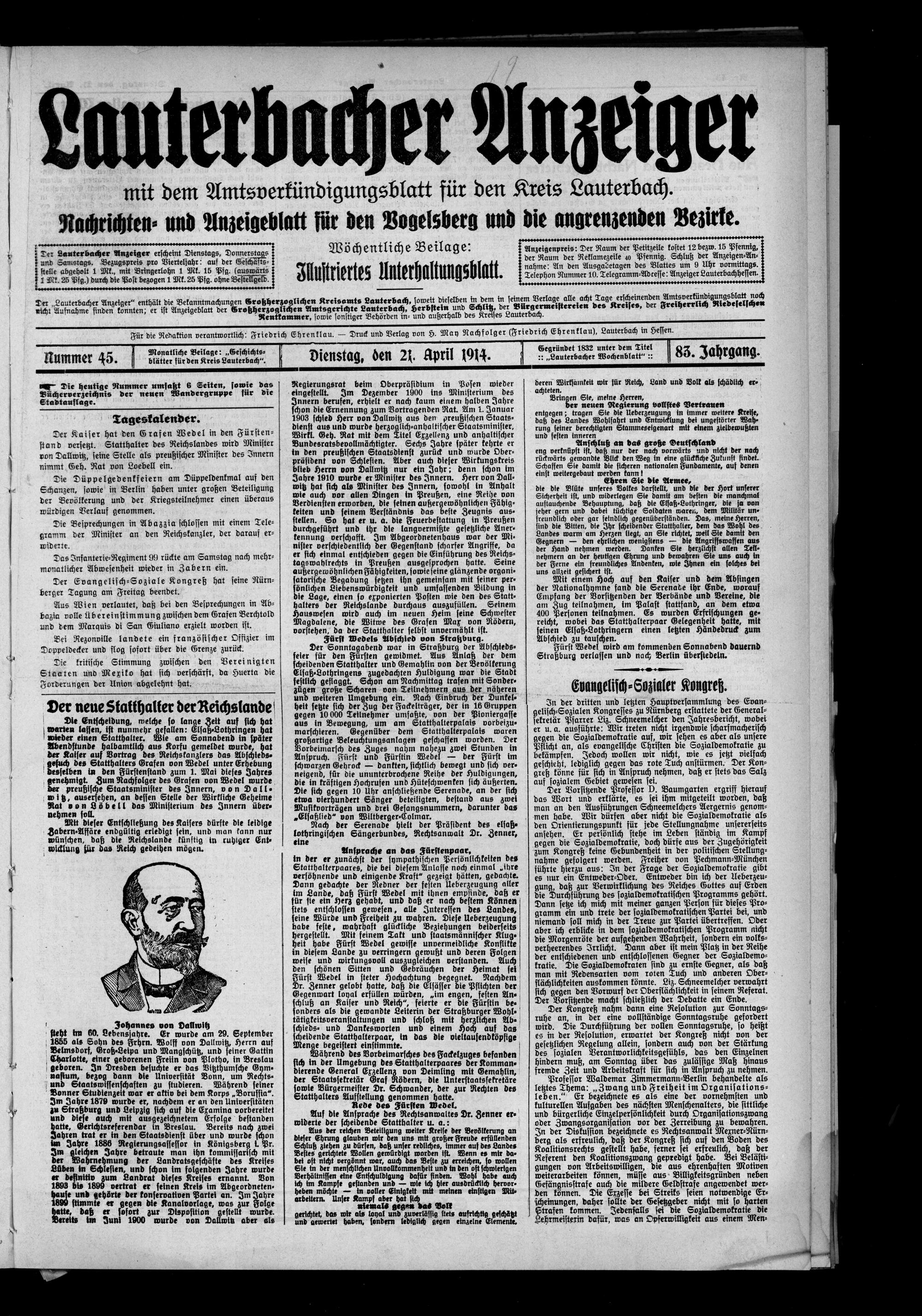 Lauterbacher Anzeiger. 1849-1916