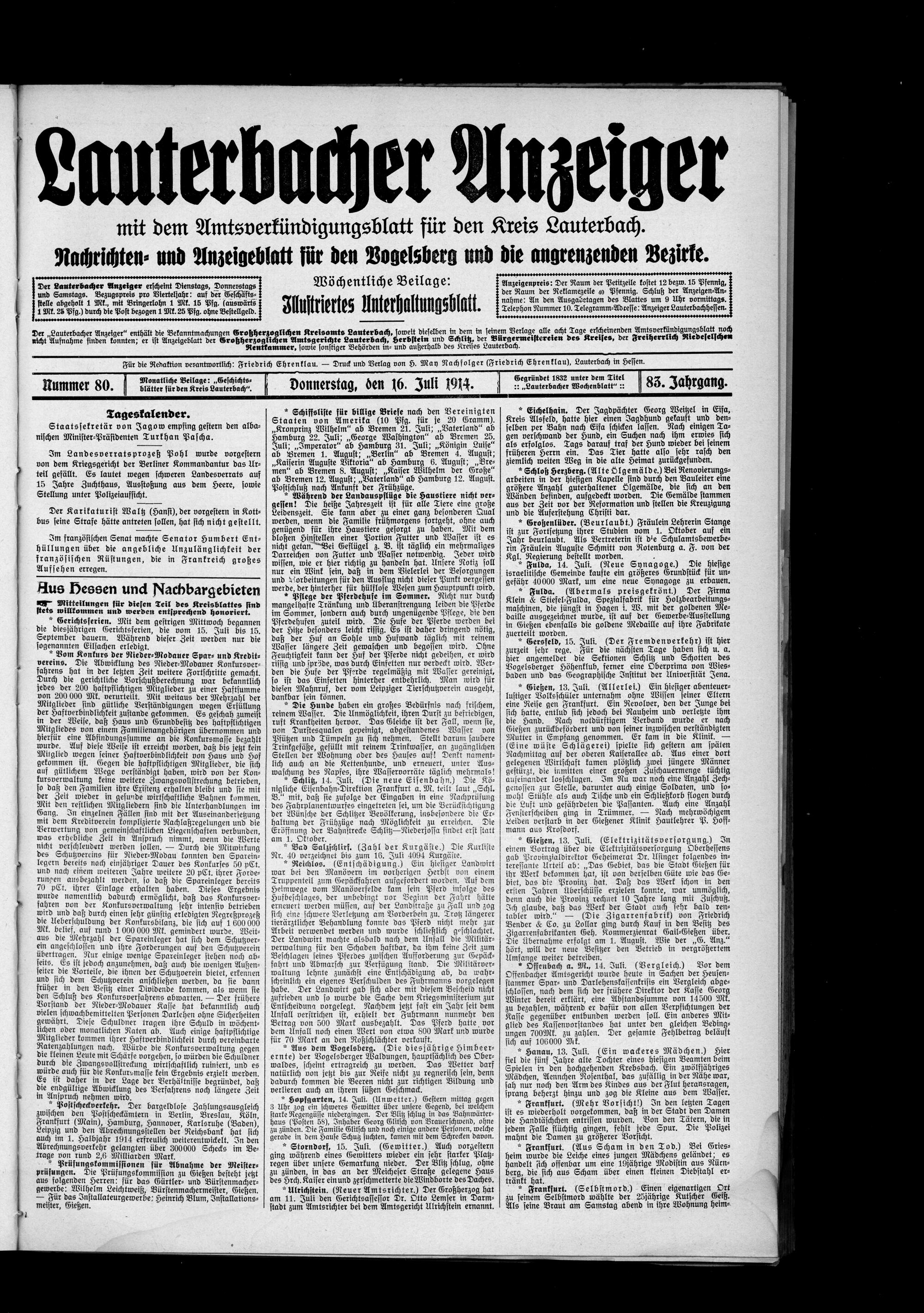 Lauterbacher Anzeiger. 1849-1916