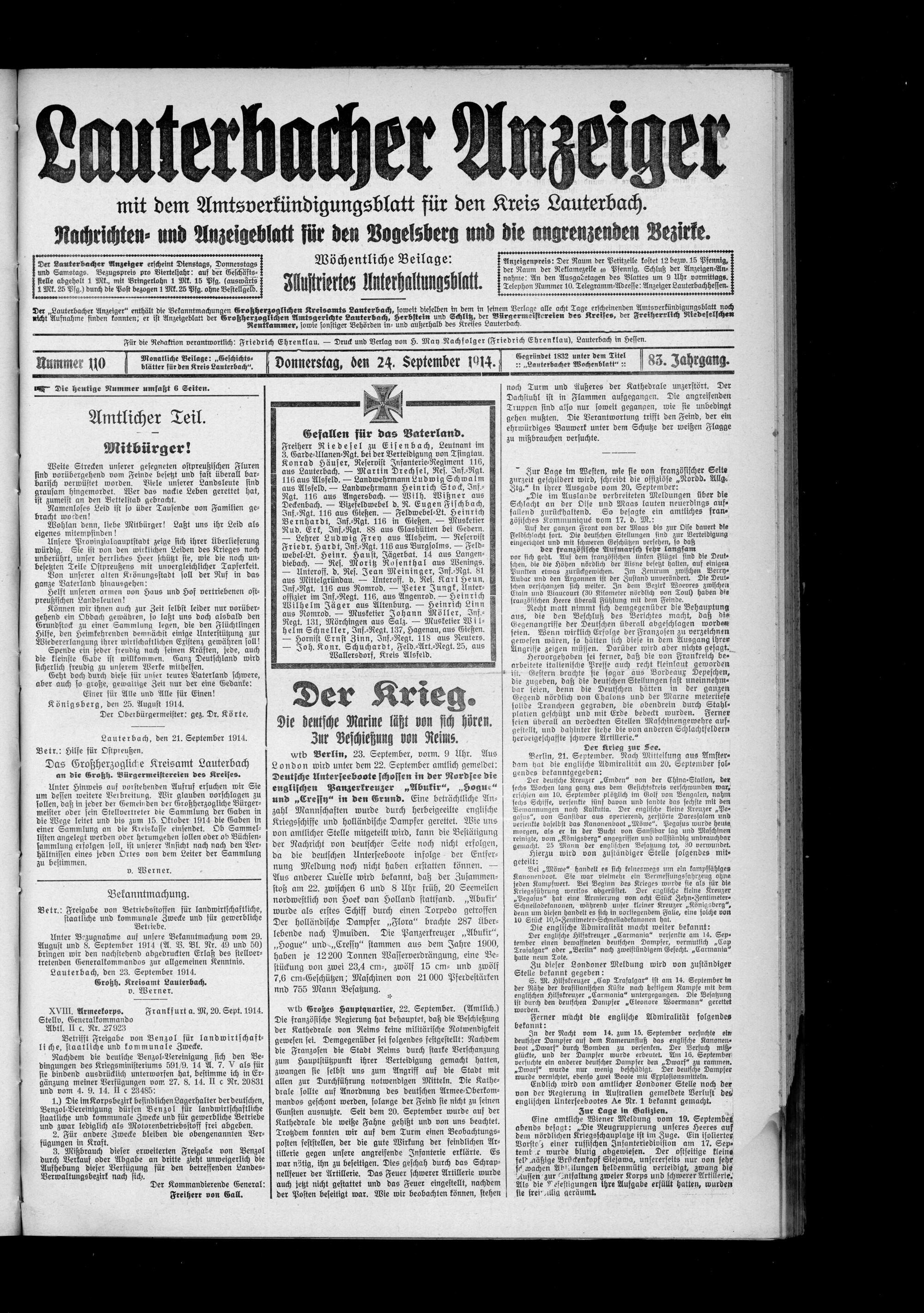 Lauterbacher Anzeiger. 1849-1916