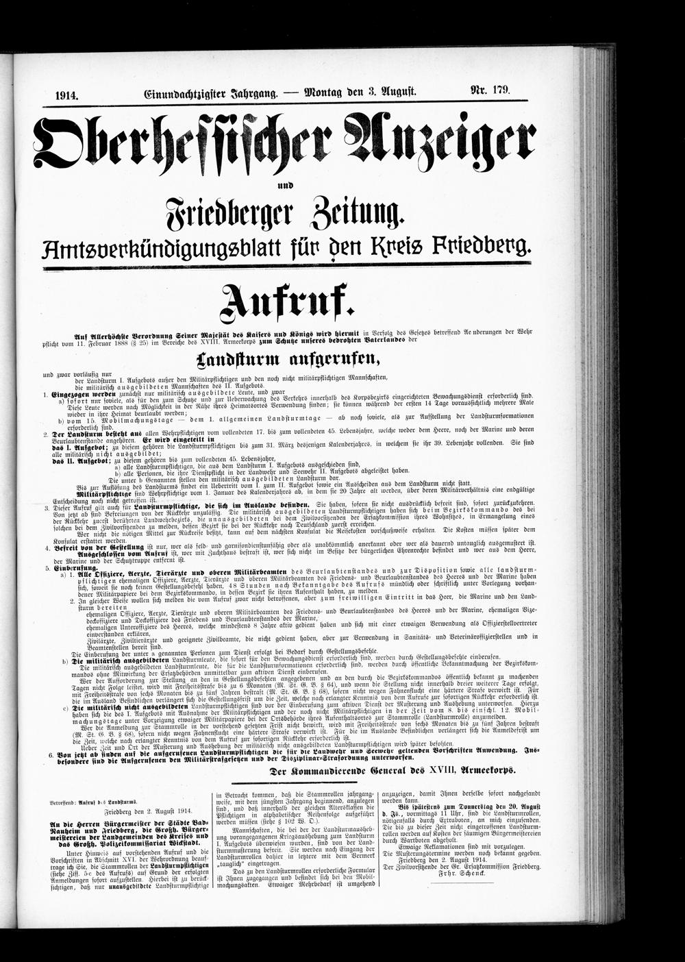 Oberhessischer Anzeiger. 1899-1933