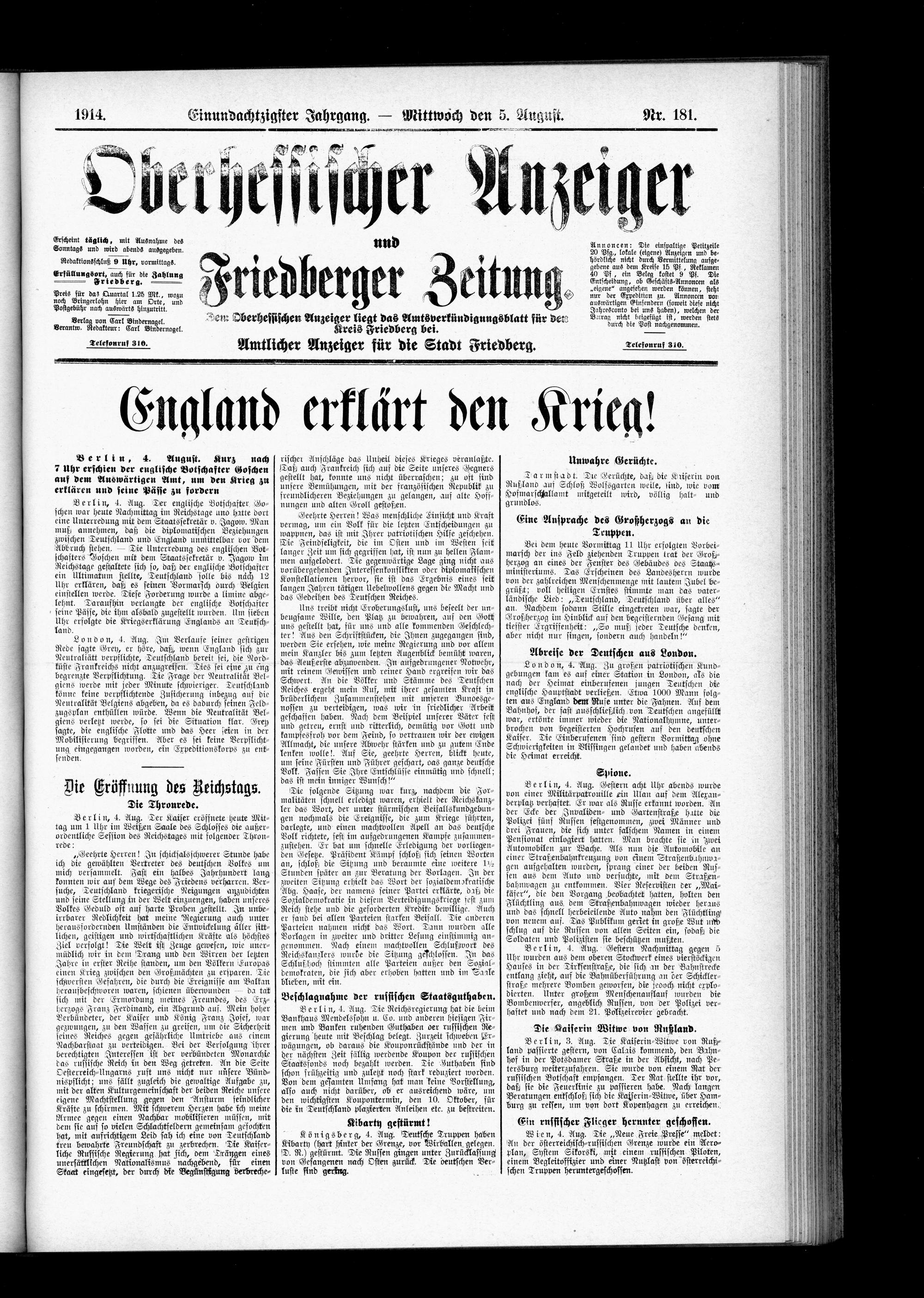 Oberhessischer Anzeiger. 1899-1933