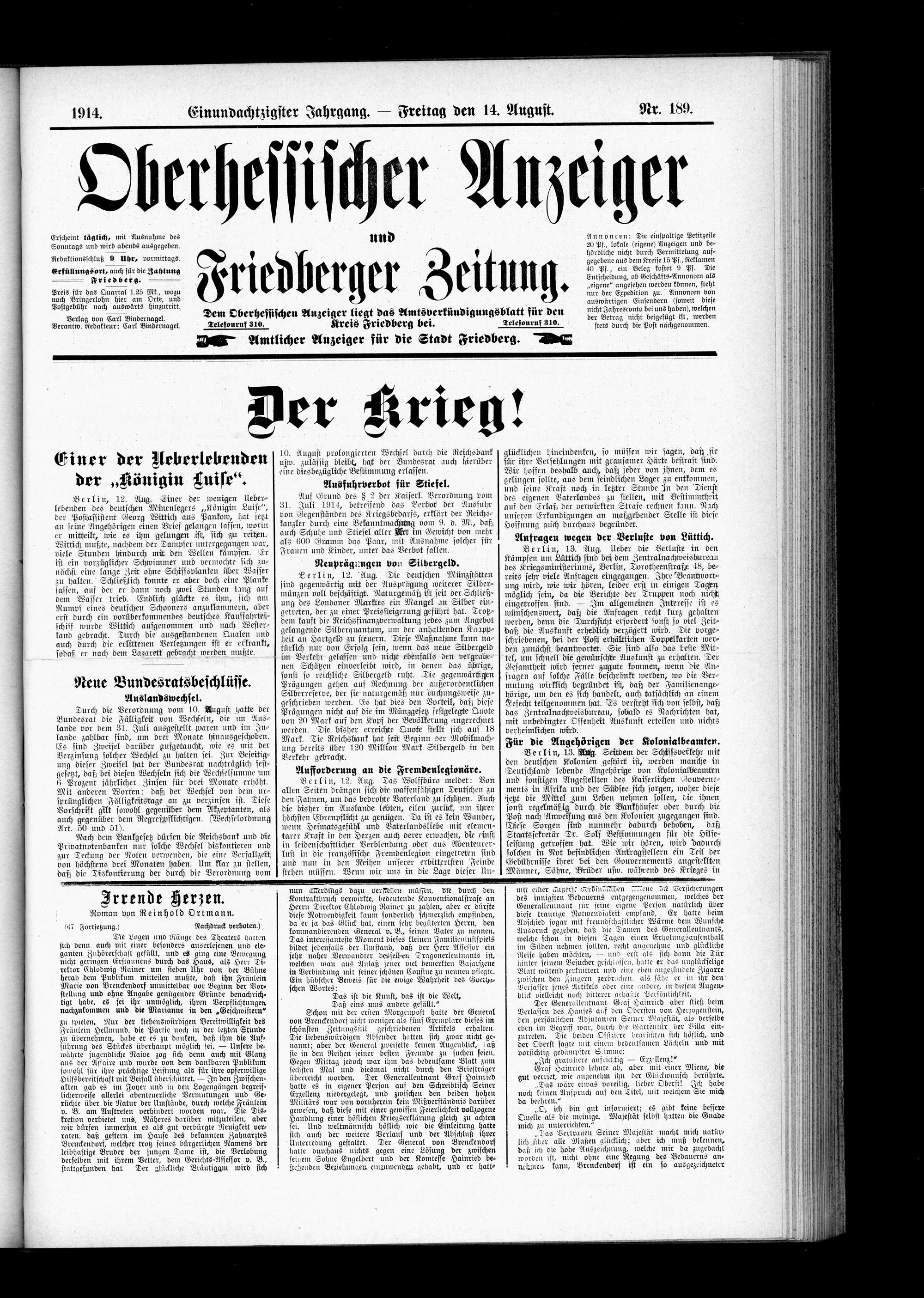 Oberhessischer Anzeiger. 1899-1933