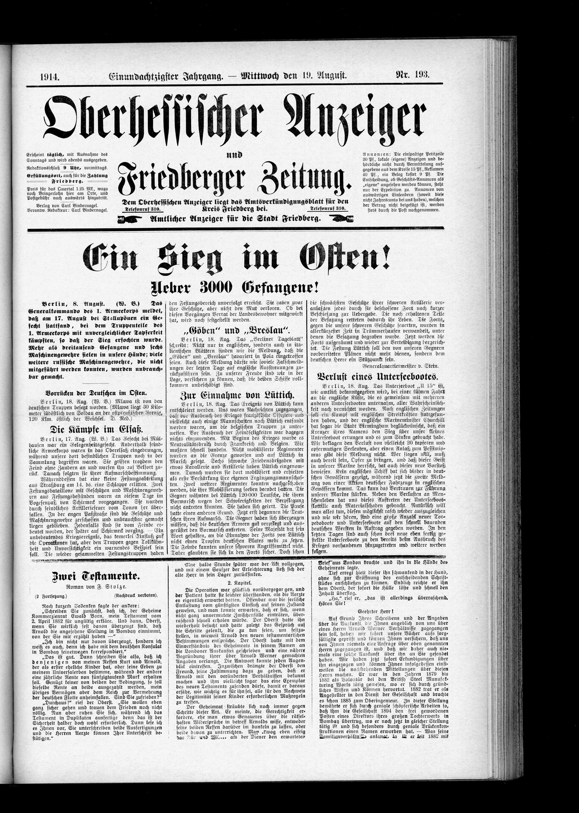 Oberhessischer Anzeiger. 1899-1933