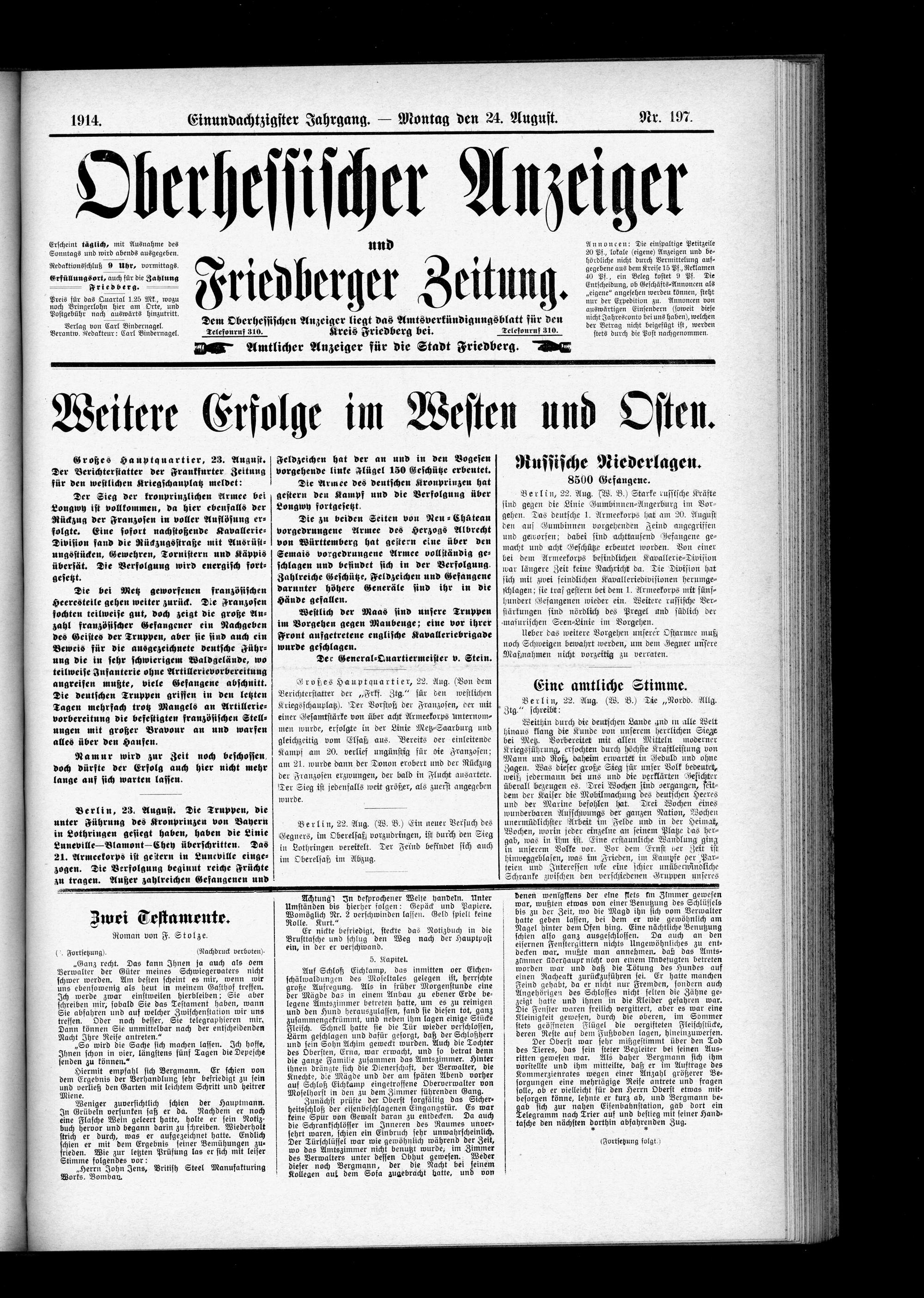 Oberhessischer Anzeiger. 1899-1933