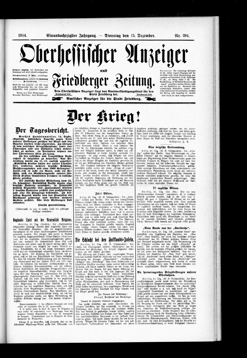 Der Erste Weltkrieg im Spiegel hessischer Regionalzeitungen