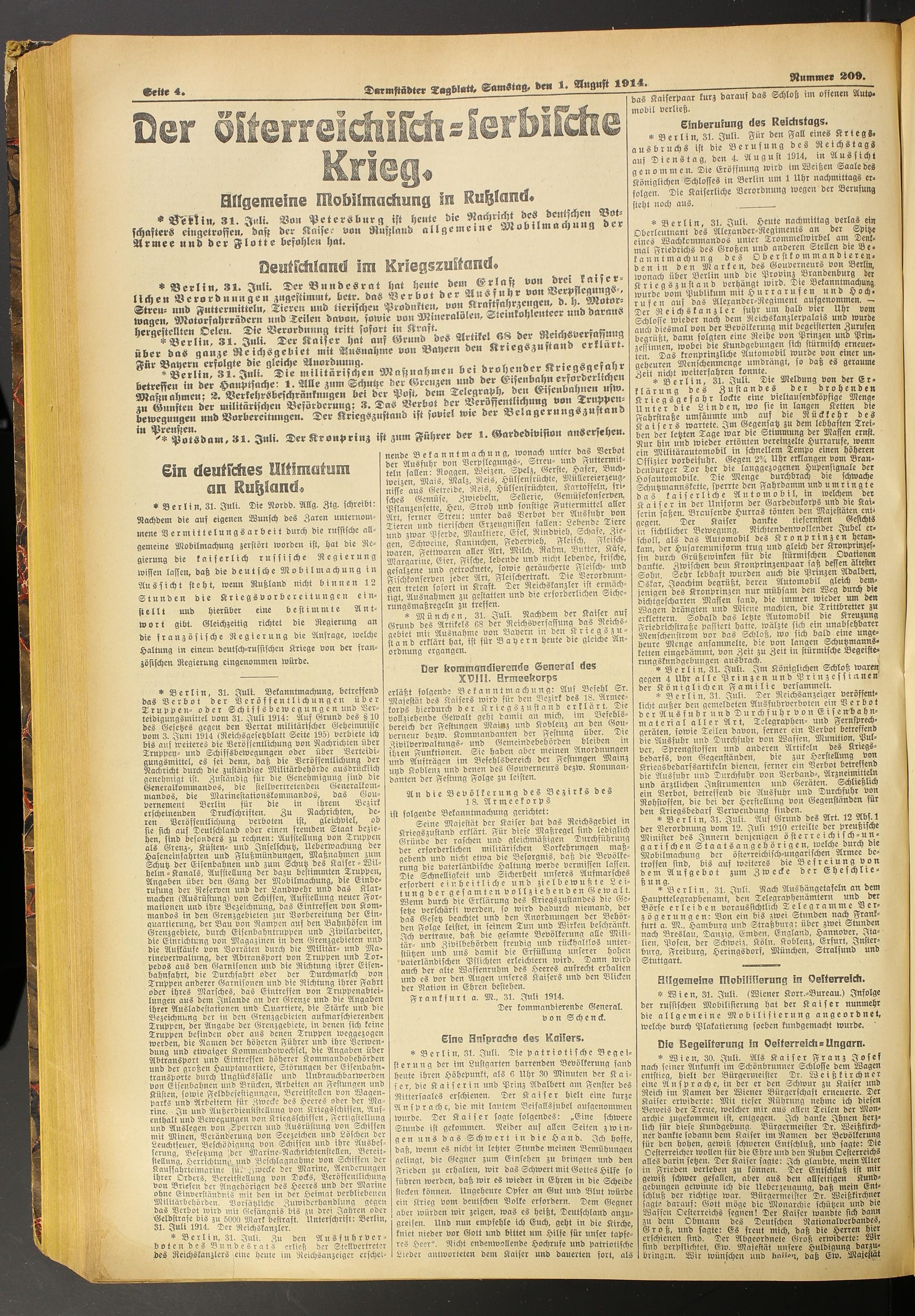 Der Erste Weltkrieg im Spiegel hessischer Regionalzeitungen