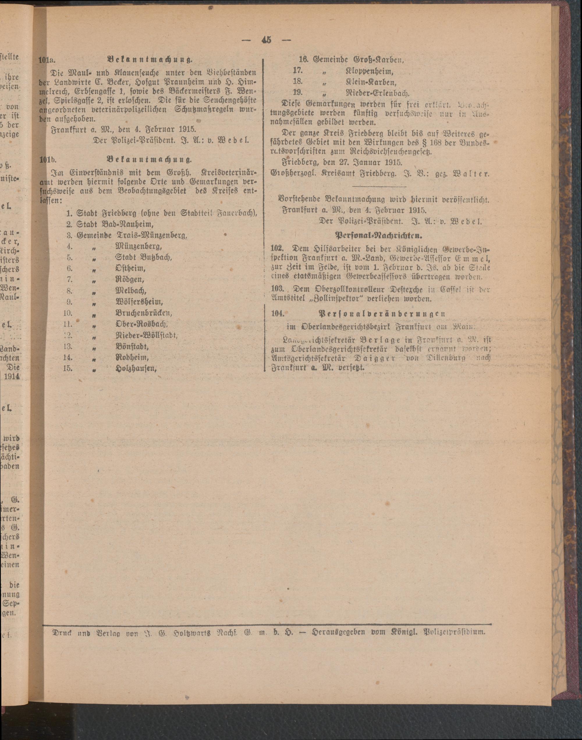 Amtsblatt für den Stadtkreis Frankfurt a.M.....