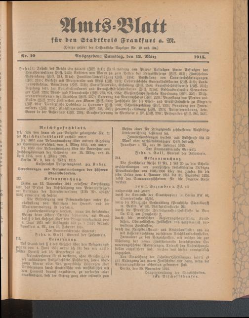 Amtsblatt für den Stadtkreis Frankfurt a.M.....