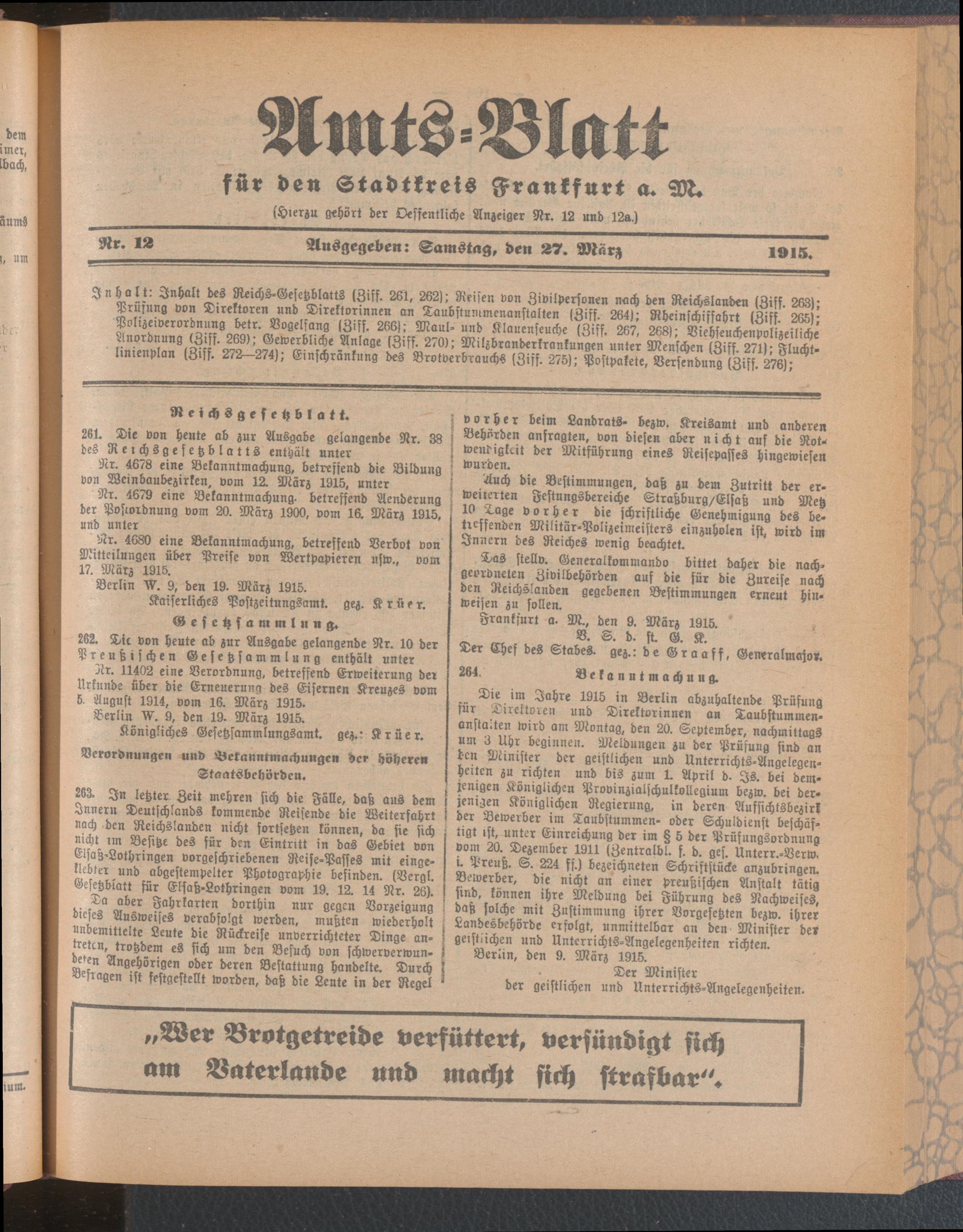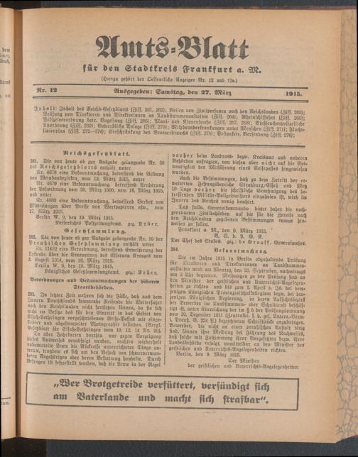 Amtsblatt für den Stadtkreis Frankfurt a.M.....