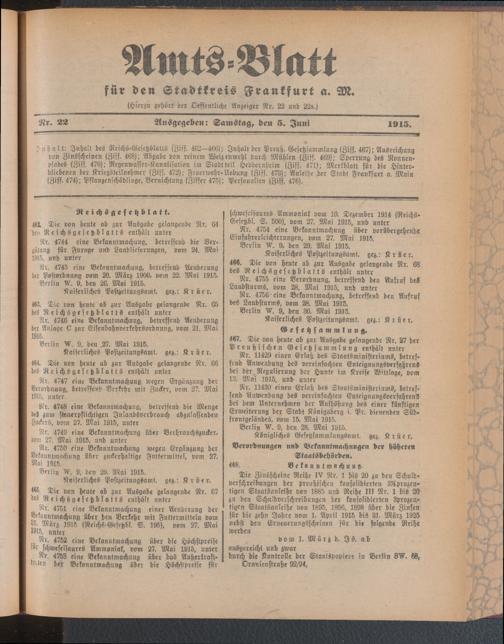 Amtsblatt für den Stadtkreis Frankfurt a.M.....