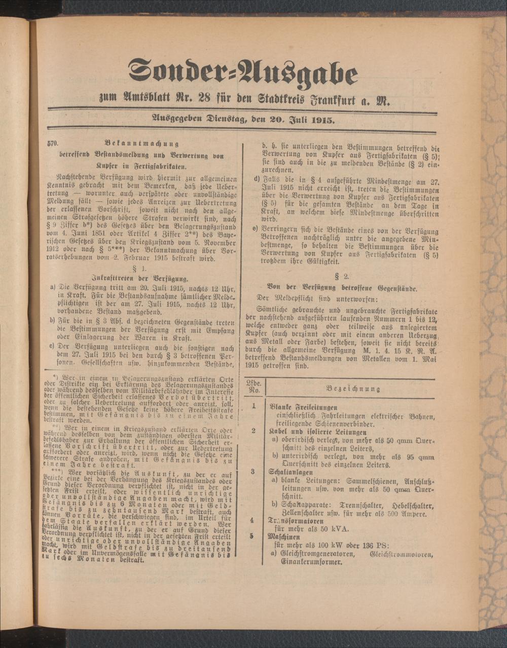 20.07.1915 = Sonder-Ausgabe zu Nr. 28