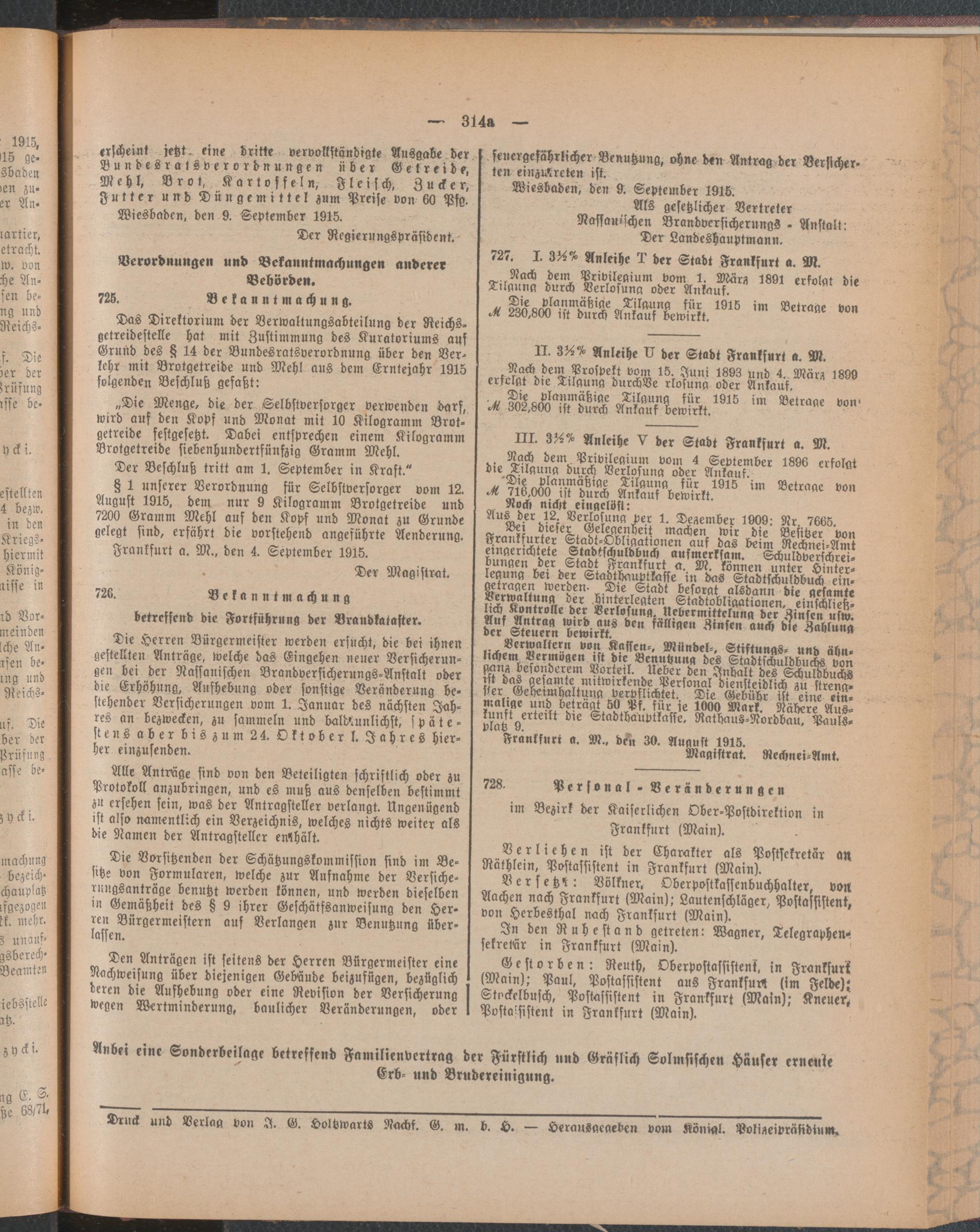 Amtsblatt für den Stadtkreis Frankfurt a.M.. 1828-1918