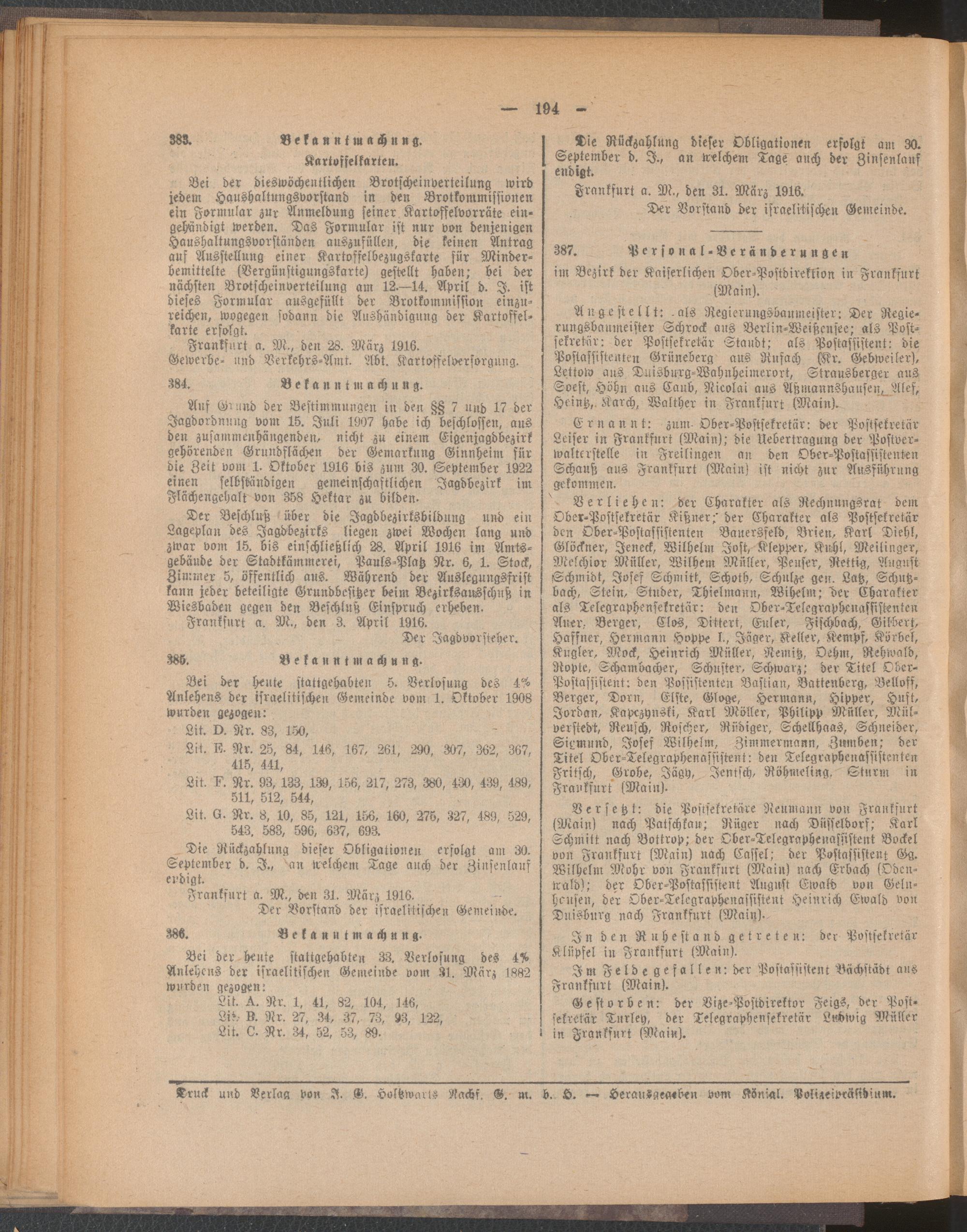Amtsblatt für den Stadtkreis Frankfurt a.M.....