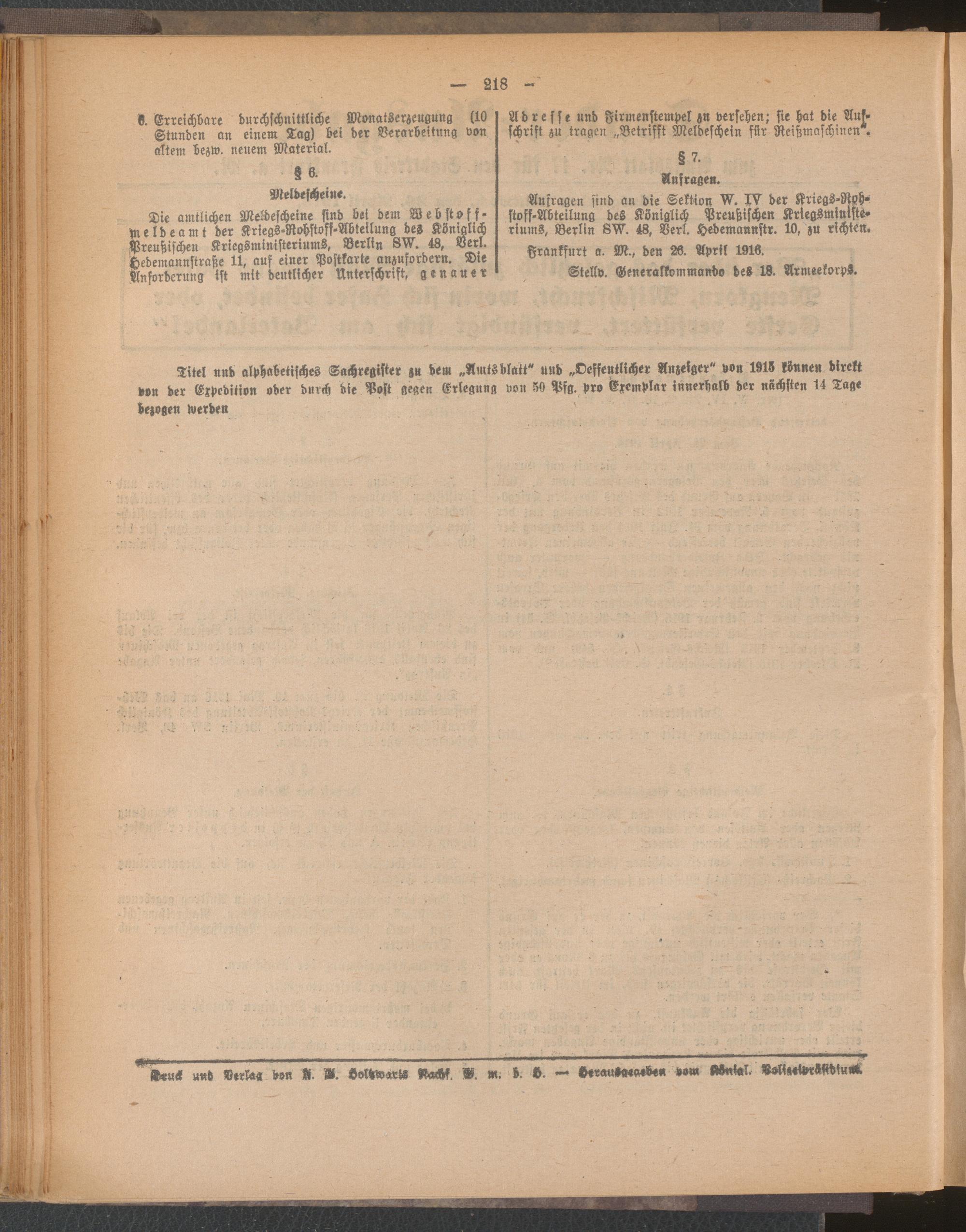 Amtsblatt für den Stadtkreis Frankfurt a.M.....