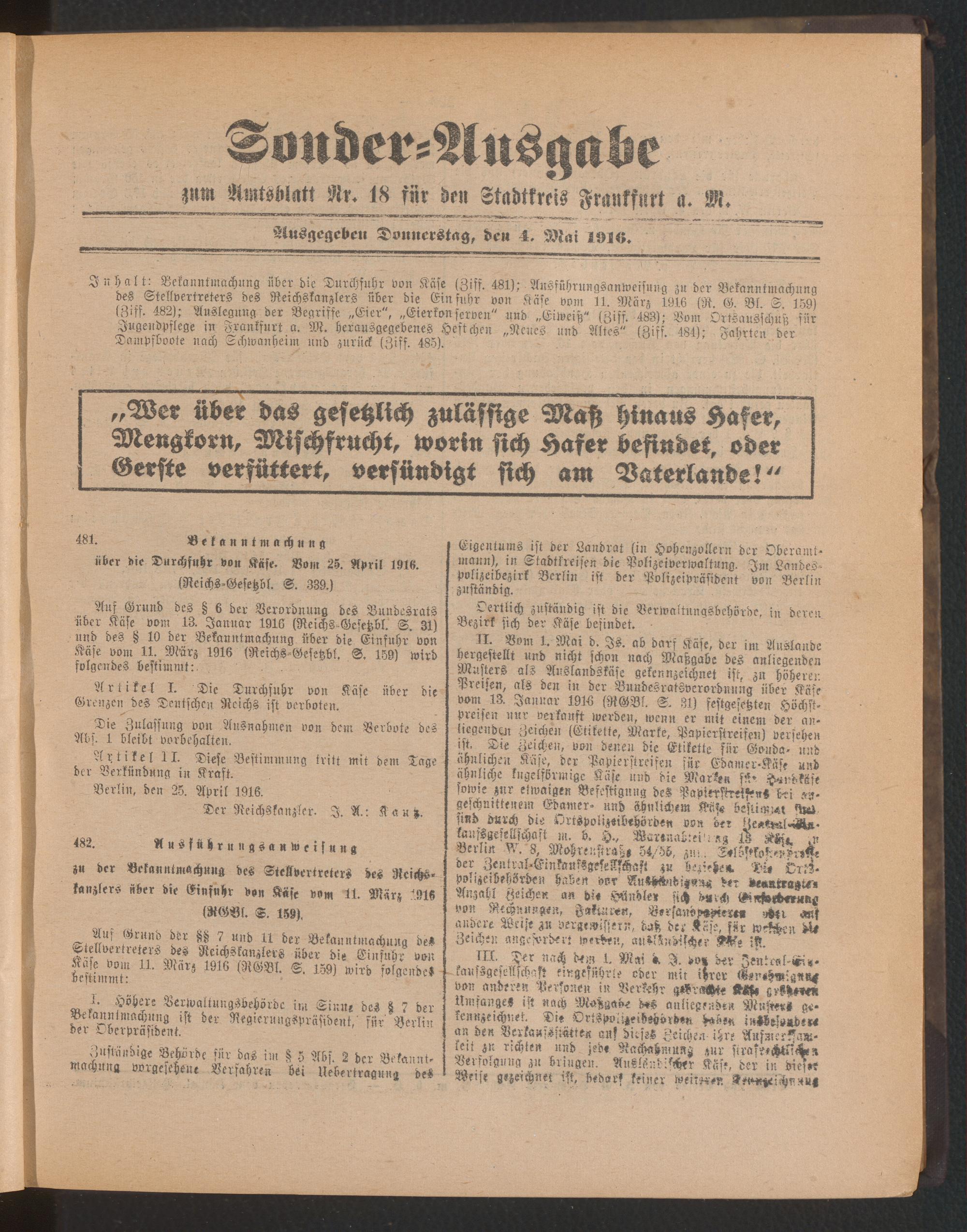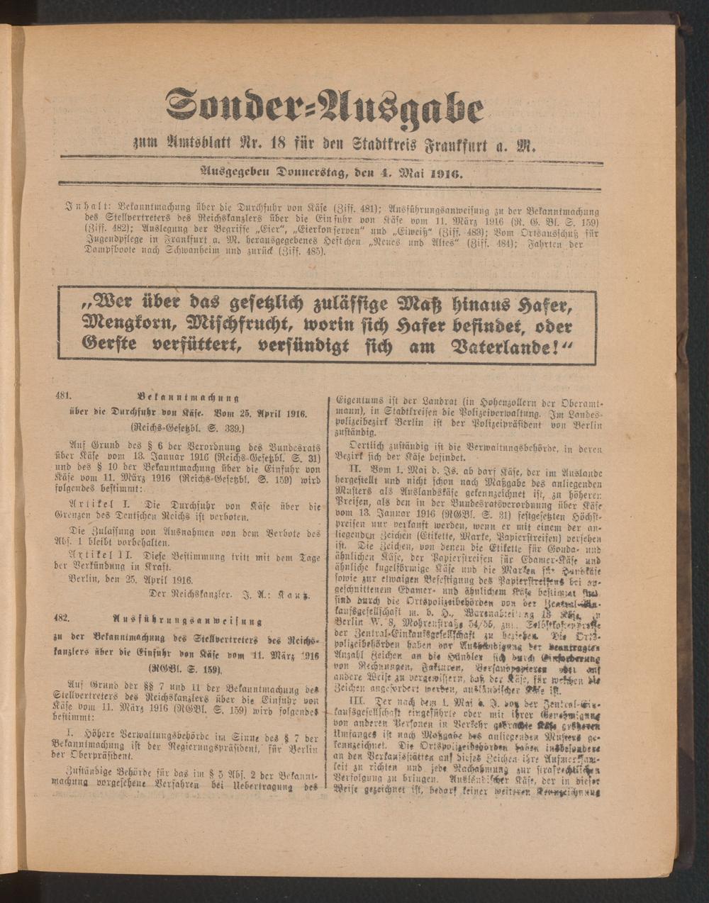 04.05.1916 = Sonder-Ausgabe zu Nr. 18