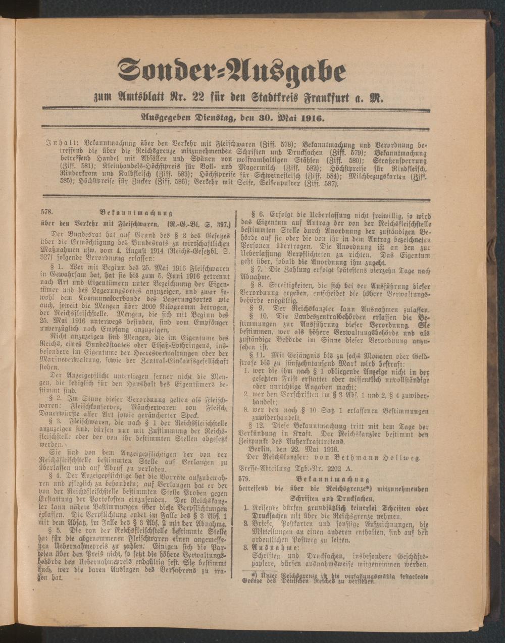 30.05.1916 = Sonder-Ausgabe zu Nr. 22