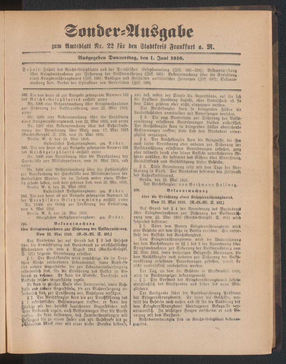 01.06.1916 = Sonder-Ausgabe zu Nr. 22