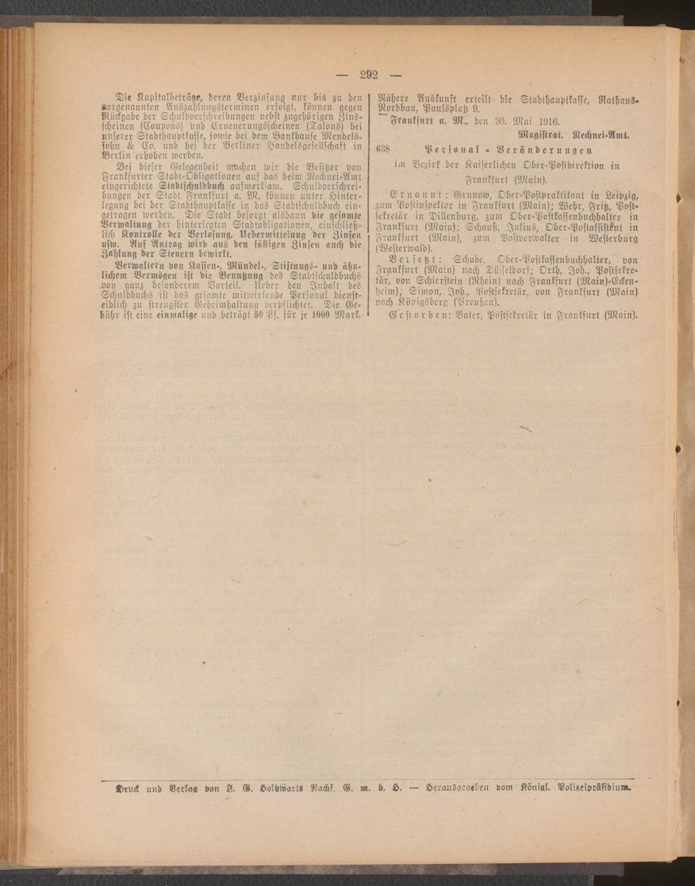 Amtsblatt für den Stadtkreis Frankfurt a.M.. 1828-1918