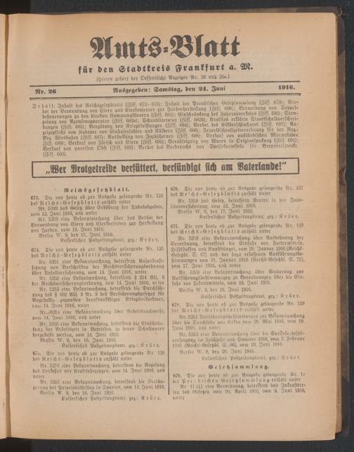 Amtsblatt für den Stadtkreis Frankfurt a.M.....