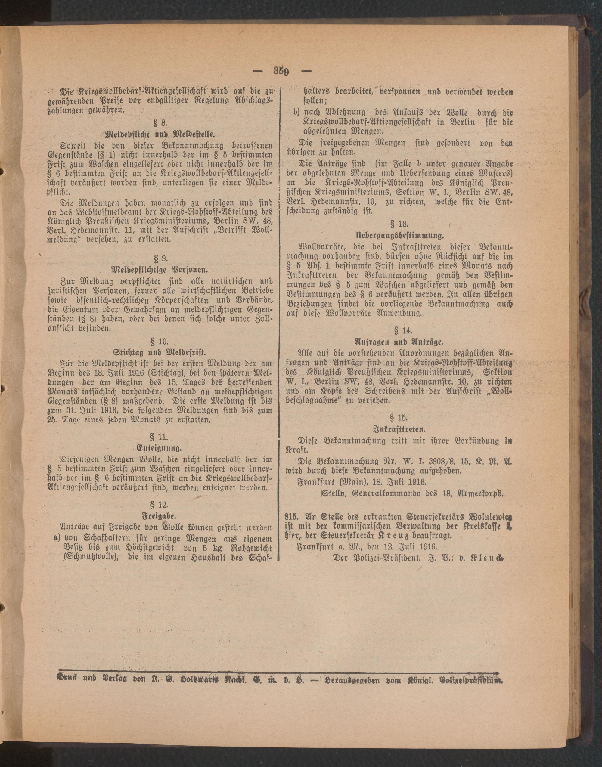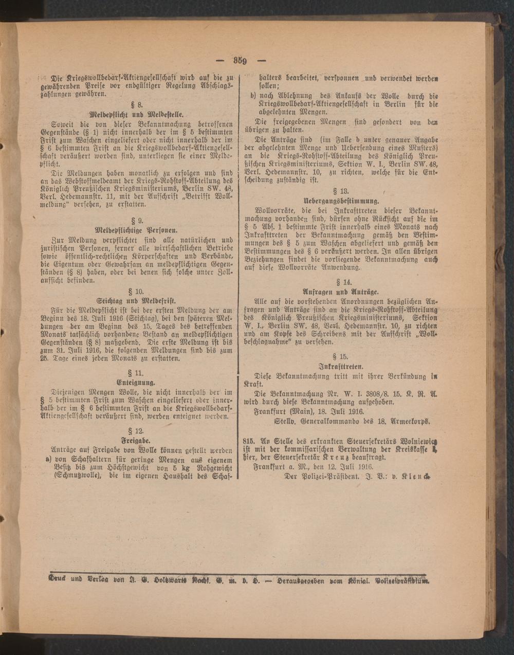 Amtsblatt für den Stadtkreis Frankfurt a.M.. 1828-1918