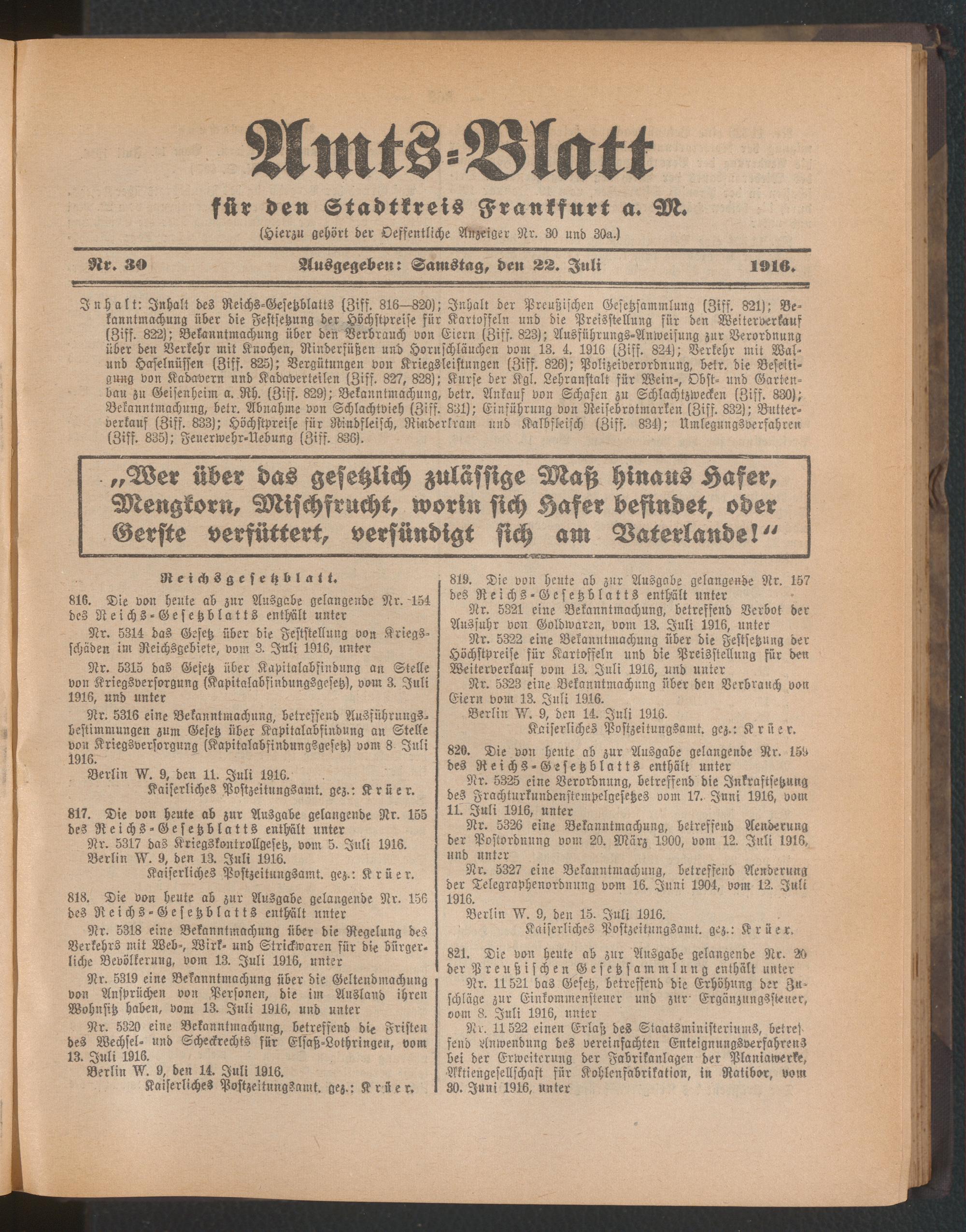 22.07.1916 = Nr. 30