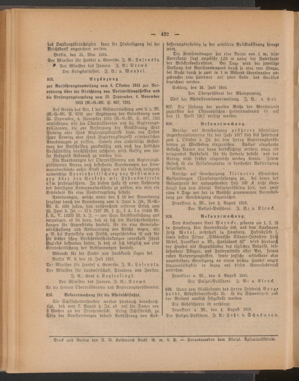 Amtsblatt für den Stadtkreis Frankfurt a.M.. 1828-1918