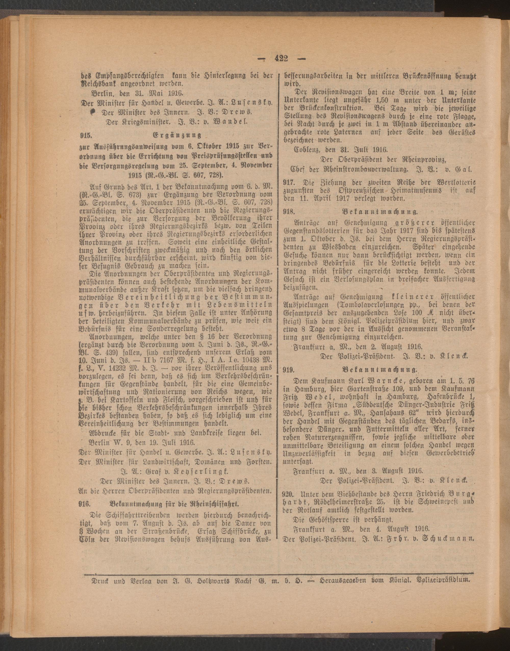 Amtsblatt für den Stadtkreis Frankfurt a.M.....