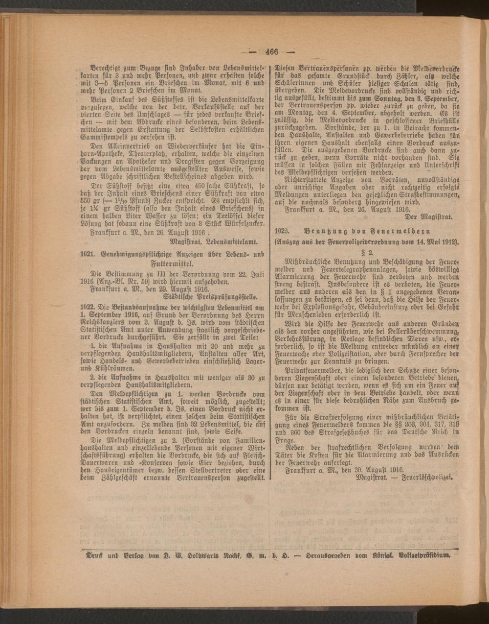 Amtsblatt für den Stadtkreis Frankfurt a.M.. 1828-1918