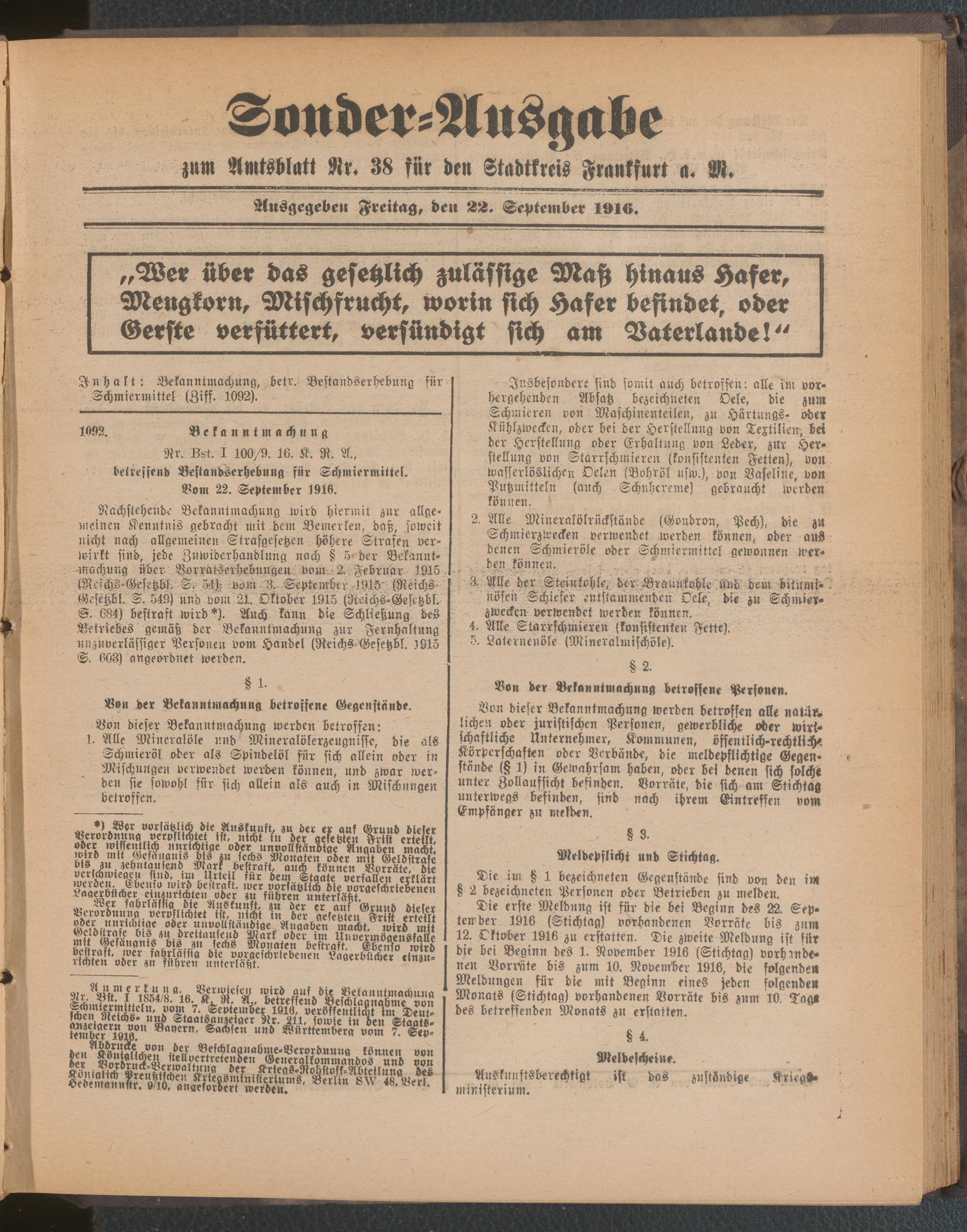 22.09.1916 = Sonder-Ausgabe zu Nr. 38