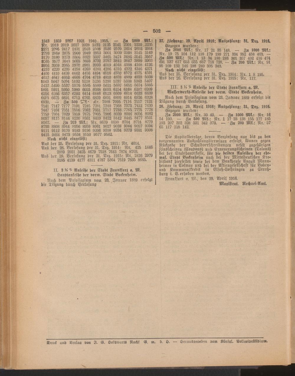 Amtsblatt für den Stadtkreis Frankfurt a.M.. 1828-1918