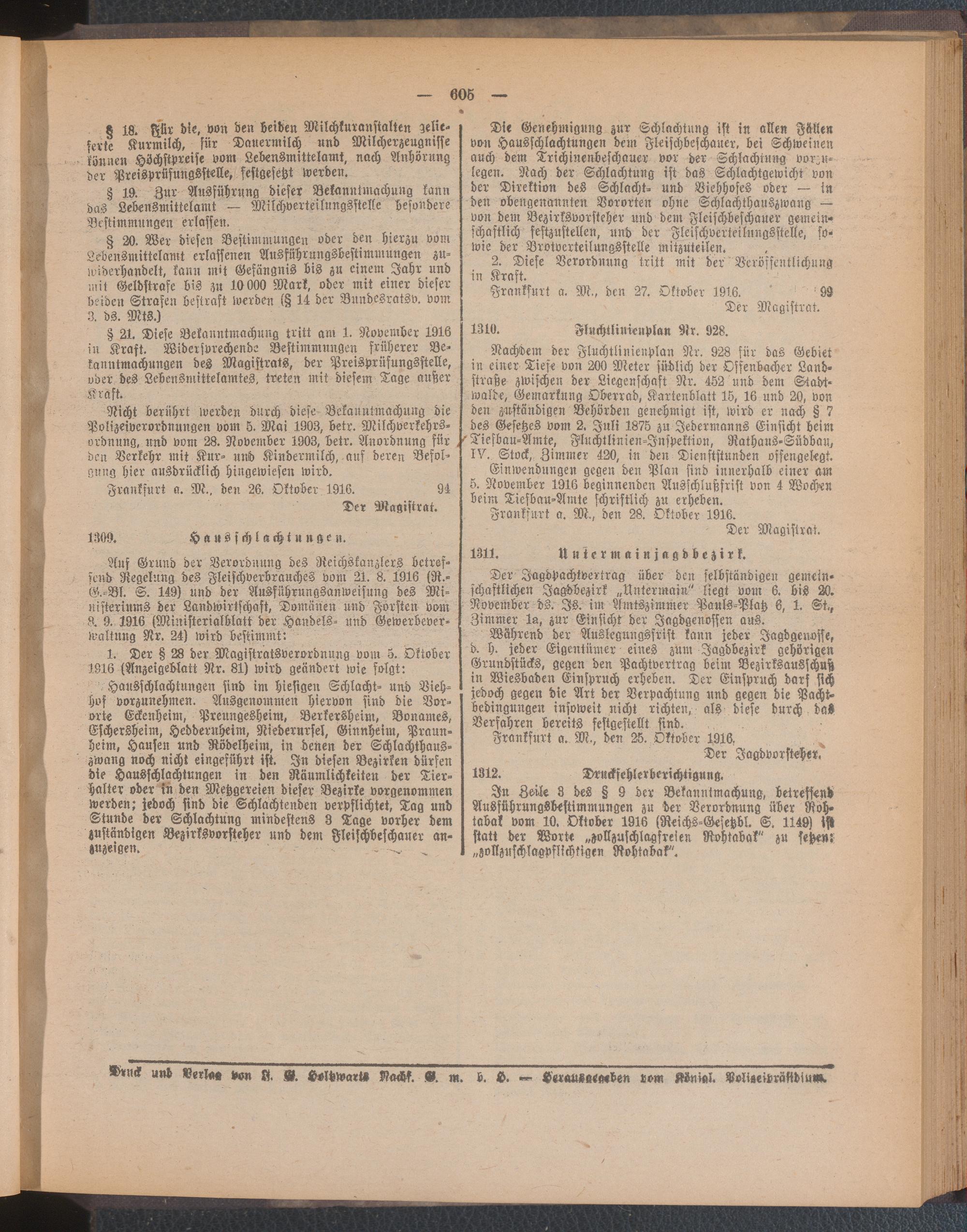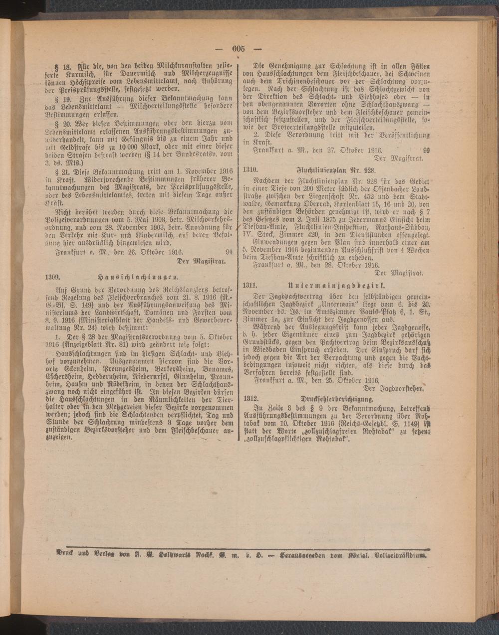 Amtsblatt für den Stadtkreis Frankfurt a.M.. 1828-1918