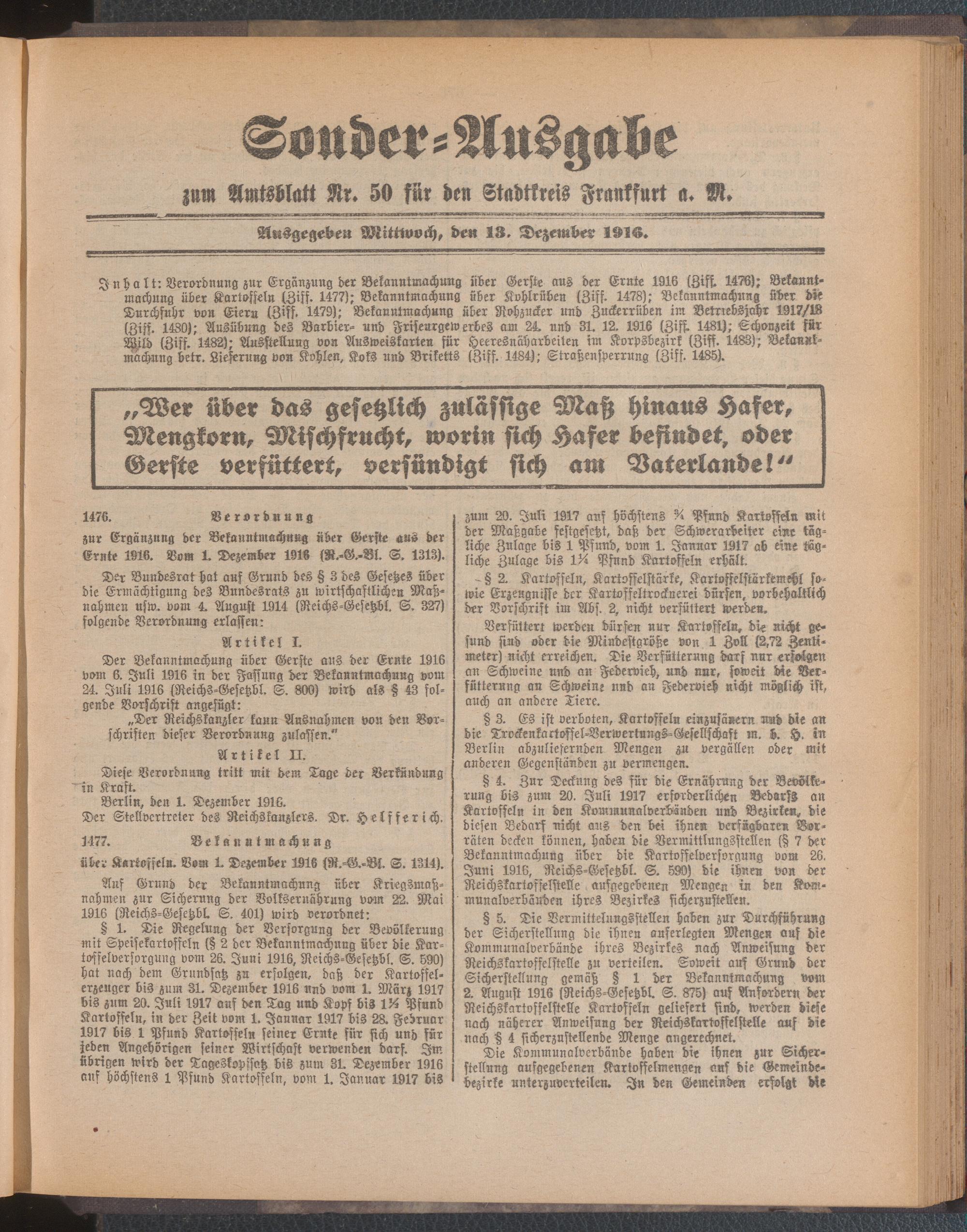 13.12.1916 = Sonder-Ausgabe zu Nr. 50