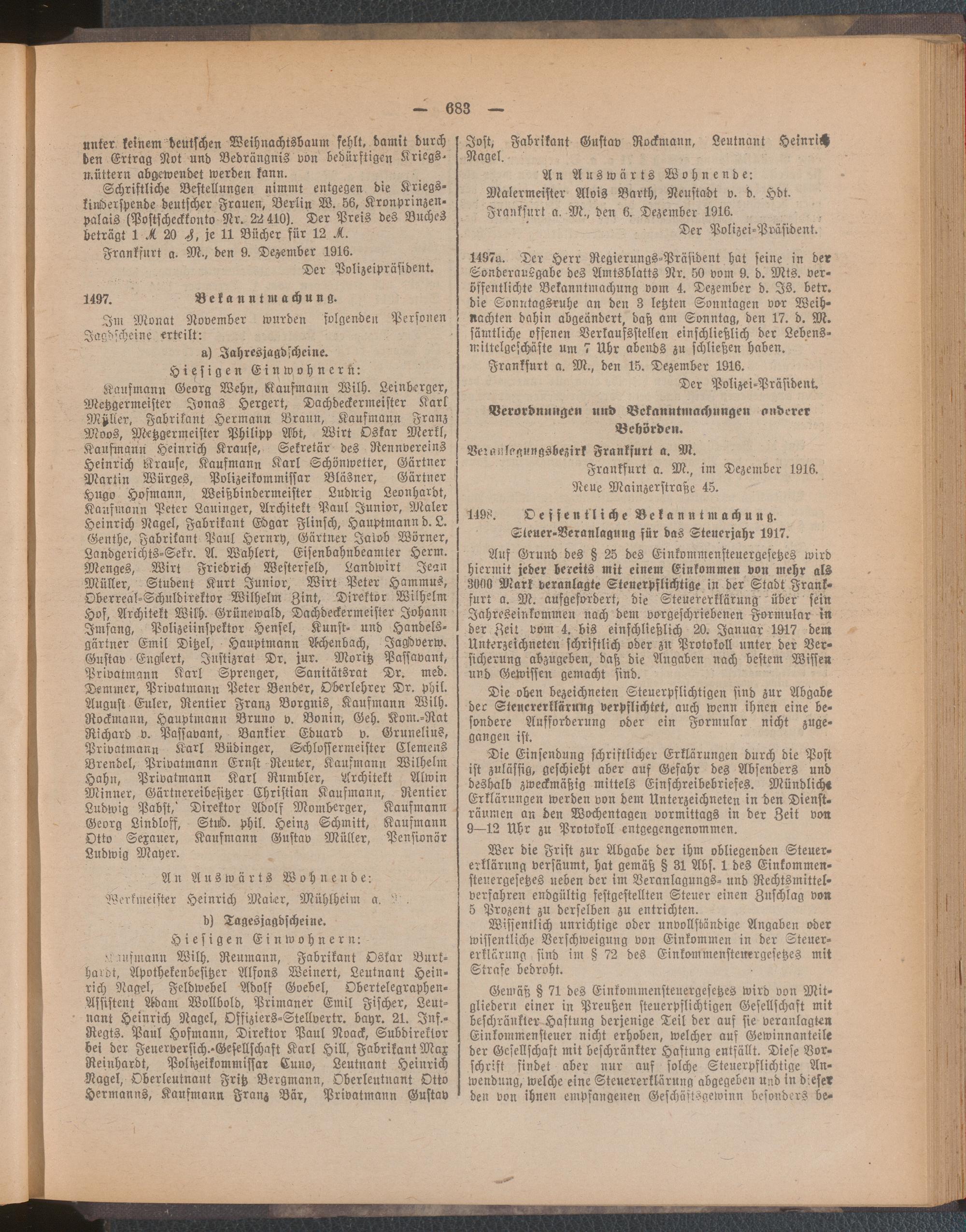 Amtsblatt für den Stadtkreis Frankfurt a.M.....