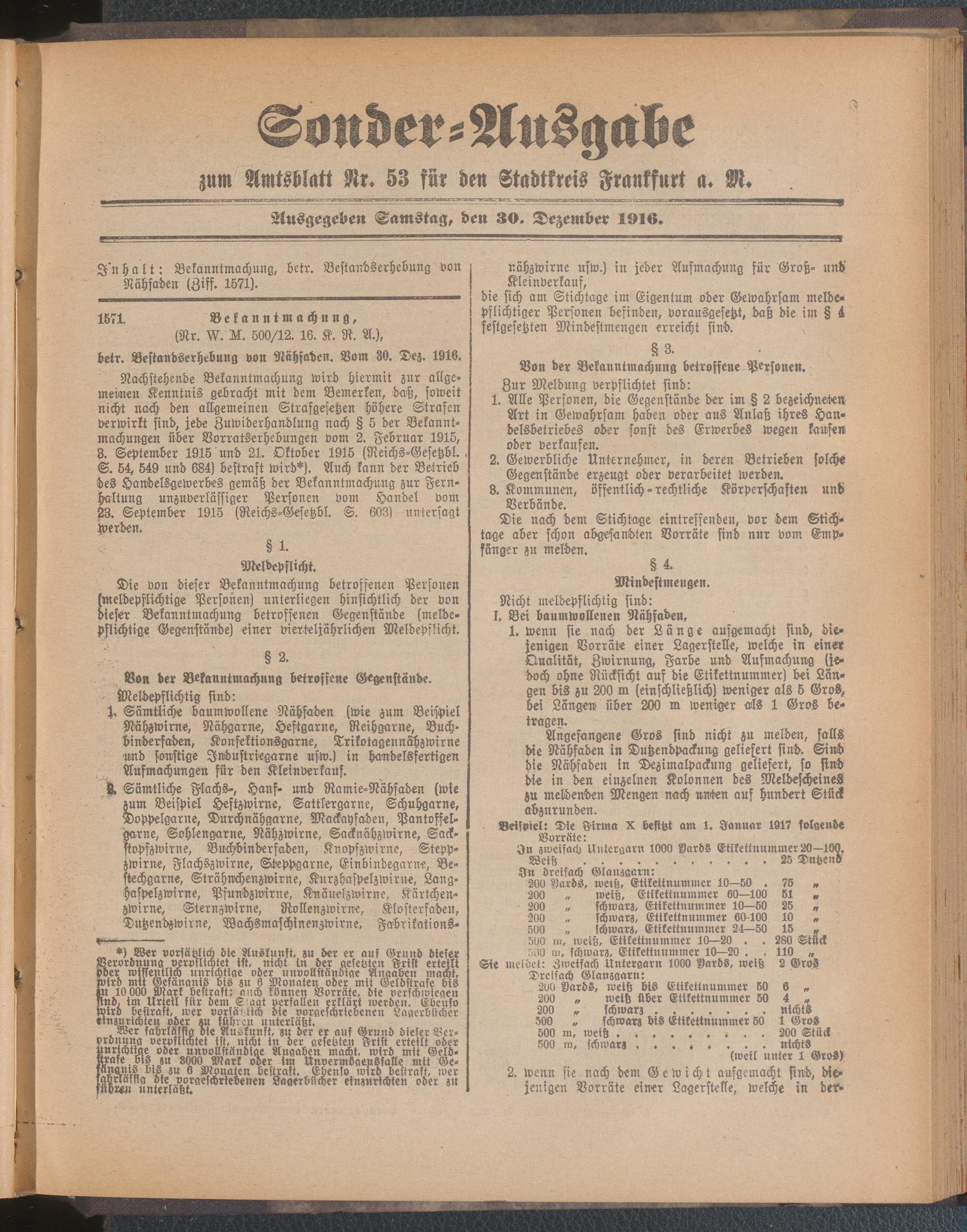30.12.1916 = Sonder-Ausgabezu Nr. 53
