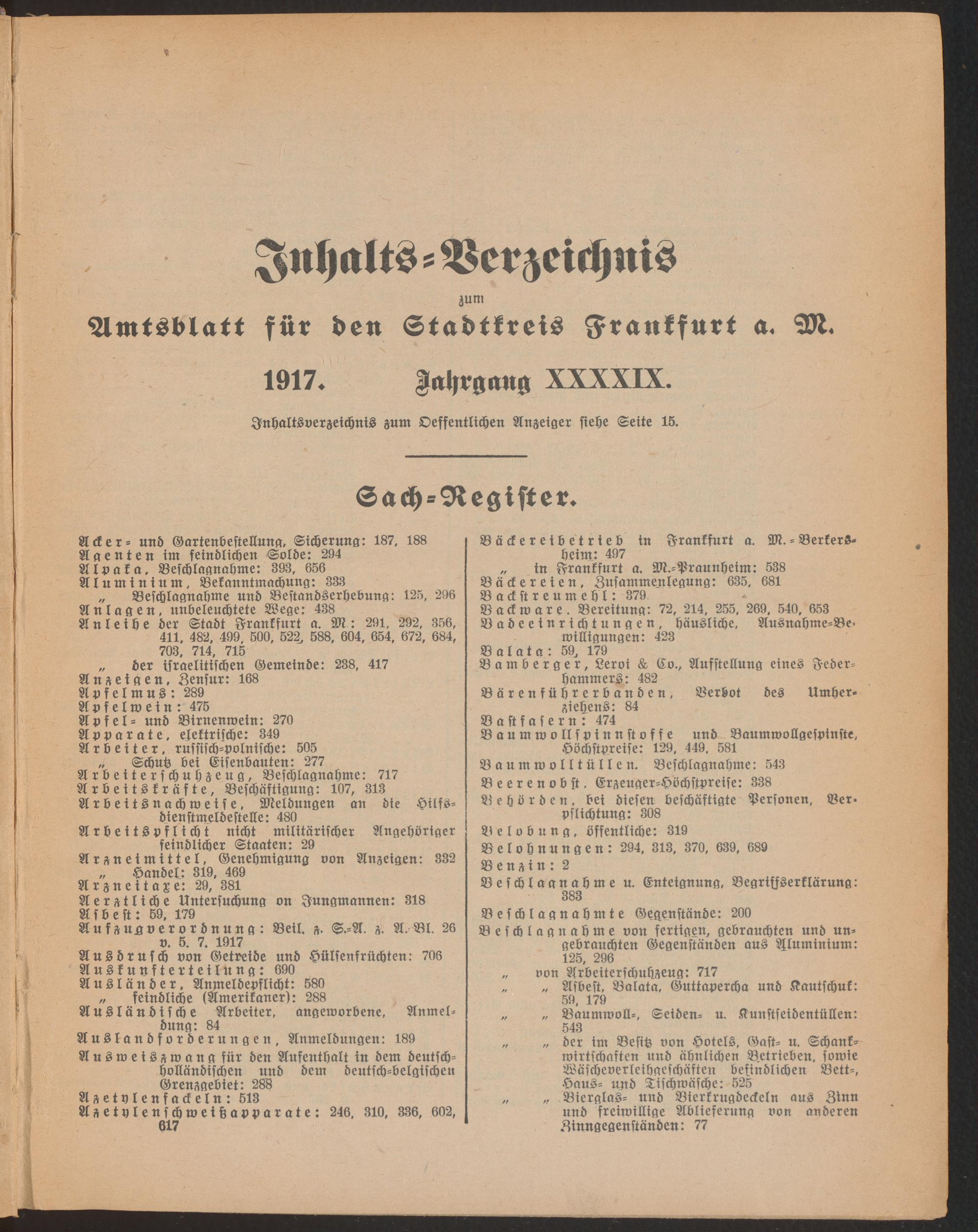 Amtsblatt für den Stadtkreis Frankfurt a.M.....
